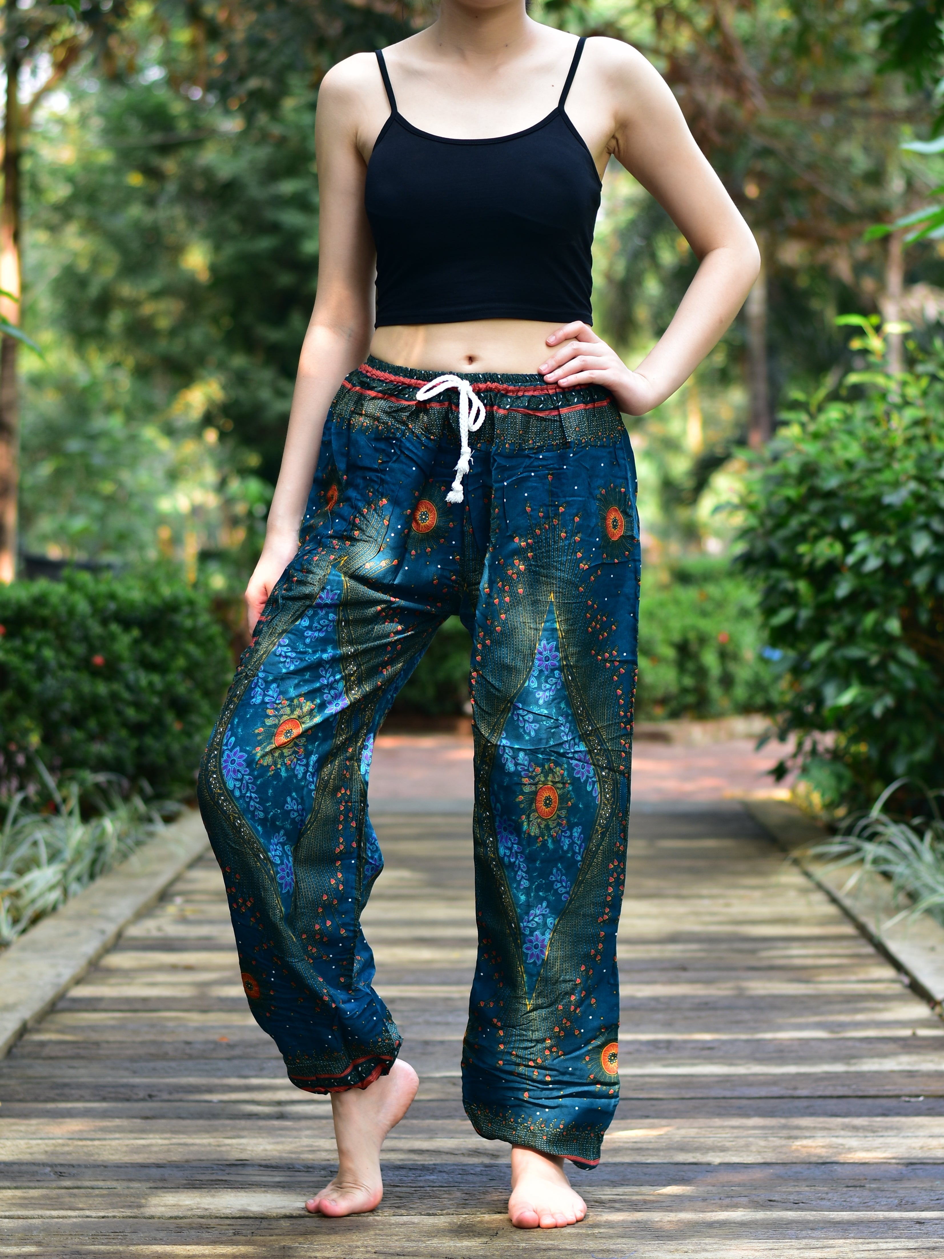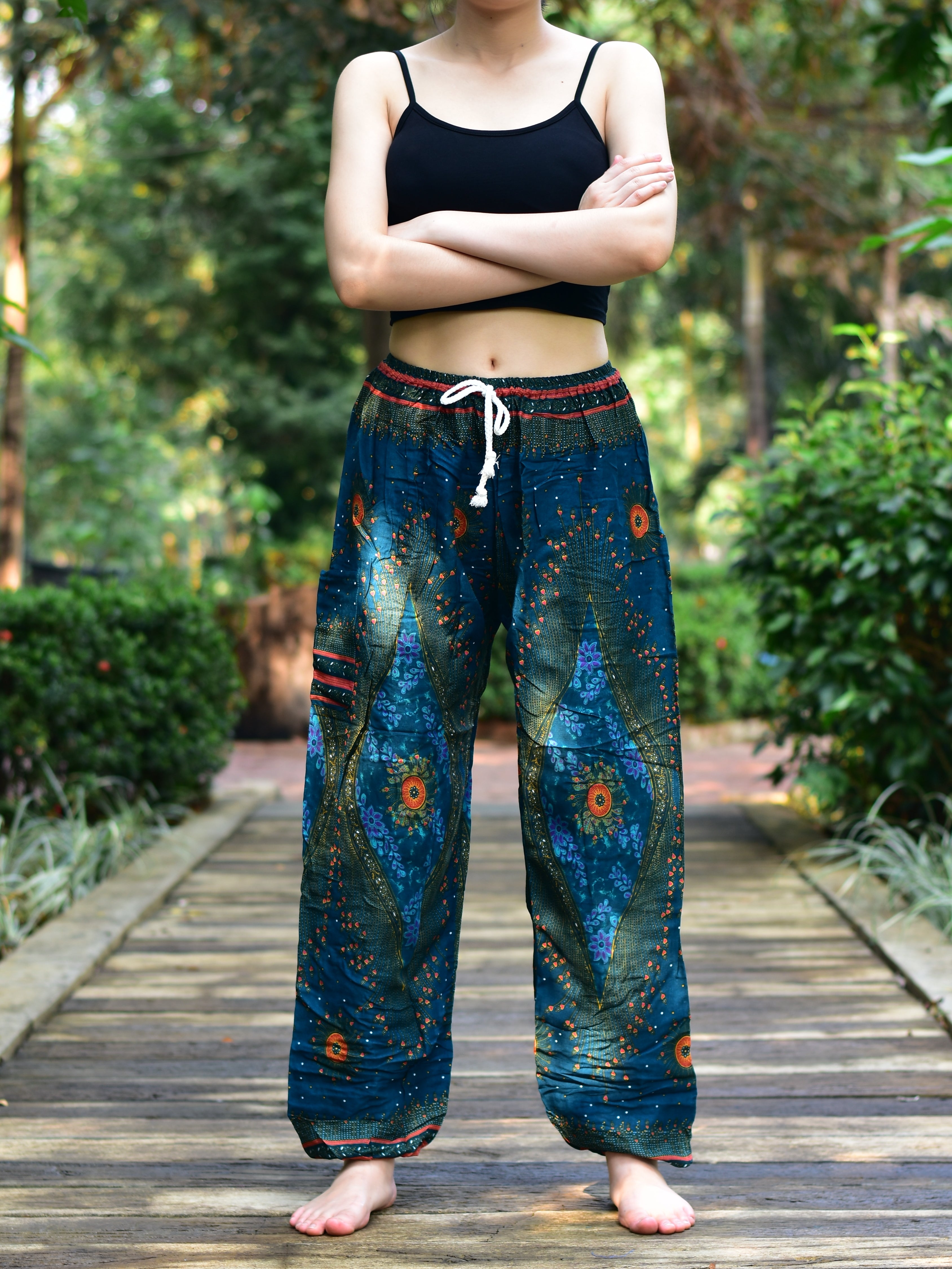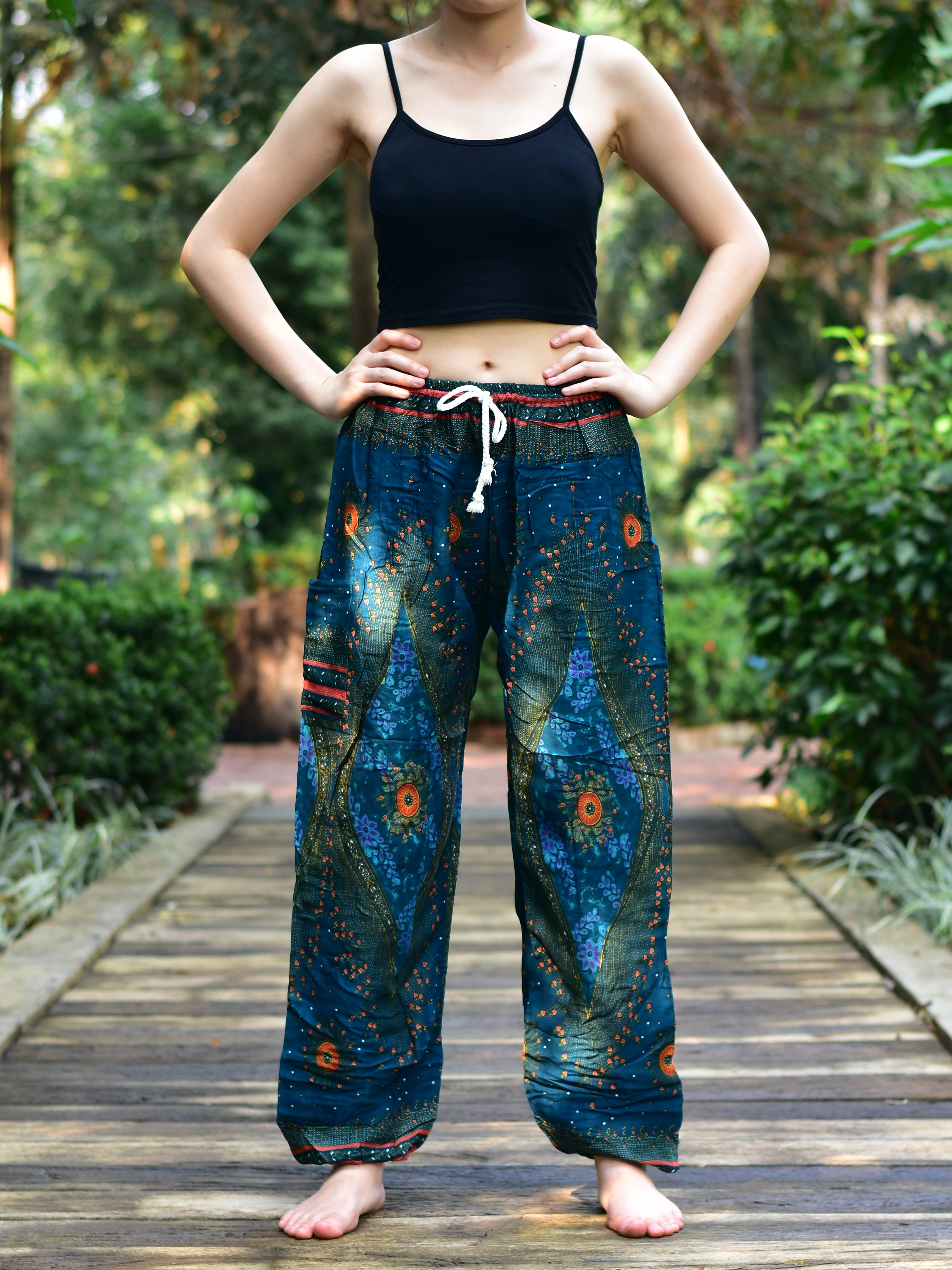 This style comes in 3 sizes with a fully elasticated waist designed to fit a broad range of waists, from 20 inches to 54 inches – see size chart for our Small / Medium and Large / X-Large and 2XL / 3XL sizes below. Our harem pants will make you feel like you’re walking on air because they are constructed from lightweight, super soft and breathable 100% Thai Rayon. Features include:- 1 x External pocket on right hip Drawstring waist tie up supported by a 1cm elasticated waist band Elasticated ankles Sizing info – Small / Medium Inside seam (inside leg) is 28 inches (72cm) Length of trouser is 42 inches (107cm) To fit hip to a maximum of 38 inches (107cm) To fit waist (as above) of 20 to 38 inches Sizing info – Large / X-Large Inside seam (inside leg) is 28 inches (72cm) Length of trouser is 42 inches (107cm) To fit hip to a maximum of 46 inches (112cm) To fit waist (as above) of 26 to 46 inches Sizing info – 2XL/3XL Inside seam (inside leg) is 29 inches (72cm) • Length of trouser is 43 inches (111cm) • To fit hip to a maximum of 54 inches (130cm) • To fit waist (as above) of 30 to 54 inches (77-130cm) Our lovely customers wear our pants for yoga, pilates, Zumba, casualwear, music festivals, travelling, running errands, beach parties…. or simply just relaxing or lounging around the house. bove) of 26 to 46 inches Our lovely customers wear our pants for yoga, pilates, Zumba, casualwear, music festivals, travelling, running errands, beach parties…. or simply just relaxing or lounging around the house.