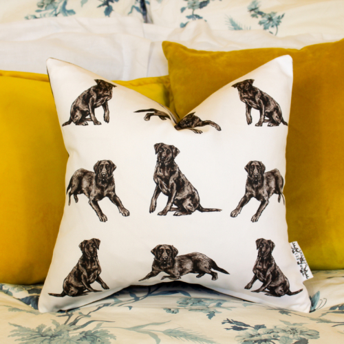 Black Labrador Large Cushion | Handmade and Designed by Gemma Keith