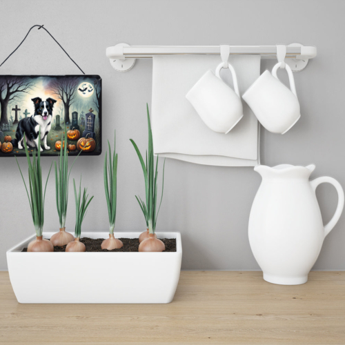 Wall or Door Hanging Prints featuring breed specific Border Collie artwork. Celebrate Halloween with this Halloween Metal Print. Add a splash of color and artistic flair to any indoor or outdoor space with our Aluminum Artwork Prints. These unique prints, featuring full-color, multicolor designs, provide a versatile decorative touch that can enhance a kitchen, bathroom, office, outdoor patio, or even the front door area. Each print measures 8 inches by 12 inches, making it the perfect size to catch the eye without overwhelming your space. Constructed with durability in mind, these prints can be placed outdoors and withstand direct sunlight for a significant amount of time before any fading begins. Designed for easy installation, each print features a black hanging rope and has a lightweight profile. This allows for quick hanging with just about any nail or screw. For safety and aesthetic appeal, the print’s corners are gently rounded. The back of the print showcases a brushed silver color for an added touch of elegance. Rust and fade-resistant, these Aluminum Artwork Prints are not only beautiful but are also built to last. Elevate your space with these stunning prints, crafted with care and artistic passion.