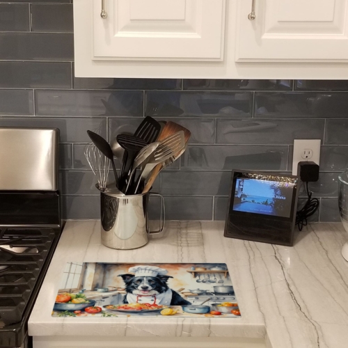 Glass Cutting Board featuring breed specific Border Collie artwork. Introduce your kitchen to the vibrant, large Decorative Glass Cutting Board from Caroline’s Treasures. Crafted from resilient tempered glass, this board is not only a utilitarian necessity but also a colorful art piece. With its generous dimensions of 15 inches in height and 12 inches in length, it offers ample space for all your cutting needs. Every piece showcases captivating artwork from distinguished artists, bringing an aesthetic edge to your kitchen. Beyond its attractive design, this cutting board ensures your countertop stays pristine and unscathed, owing to its heat-resistant properties. Engineered with user convenience in mind, it features non-skid feet for stability, and rounded corners for additional safety. Its robust construction renders it virtually unbreakable, guaranteeing longevity. The board comes with protective feet bumpers, maintaining its position during use. This product is recommended to be hand washed only. Proudly printed and assembled in the United States, this cutting board exemplifies superior craftsmanship. With Caroline’s Treasures’ Decorative Glass Cutting Board, you’re investing in a blend of functionality and artistic flair.
