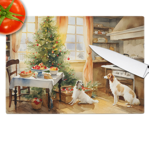 Glass Cutting Board featuring breed specific Borzoi Russian Wolfhound artwork. Celebrate Christmas with this Christmas Cutting Board. Introduce your kitchen to the vibrant, large Decorative Glass Cutting Board from Caroline’s Treasures. Crafted from resilient tempered glass, this board is not only a utilitarian necessity but also a colorful art piece. With its generous dimensions of 15 inches in height and 12 inches in length, it offers ample space for all your cutting needs. Every piece showcases captivating artwork from distinguished artists, bringing an aesthetic edge to your kitchen. Beyond its attractive design, this cutting board ensures your countertop stays pristine and unscathed, owing to its heat-resistant properties. Engineered with user convenience in mind, it features non-skid feet for stability, and rounded corners for additional safety. Its robust construction renders it virtually unbreakable, guaranteeing longevity. The board comes with protective feet bumpers, maintaining its position during use. This product is recommended to be hand washed only. Proudly printed and assembled in the United States, this cutting board exemplifies superior craftsmanship. With Caroline’s Treasures’ Decorative Glass Cutting Board, you’re investing in a blend of functionality and artistic flair.
