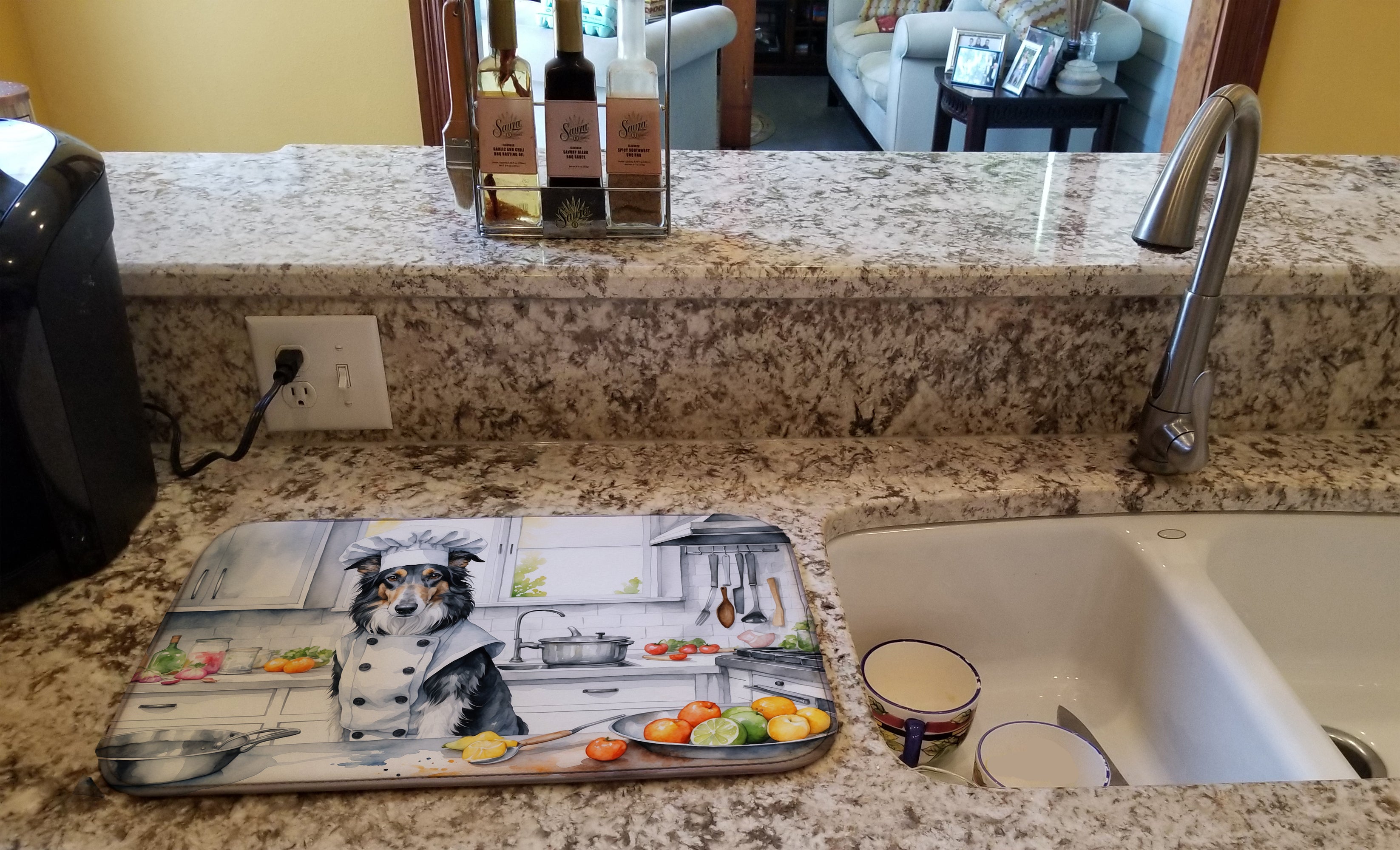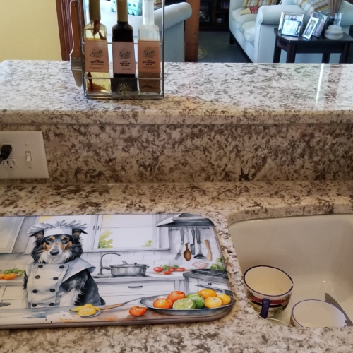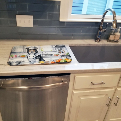 Dish Drying Mat featuring breed specific Borzoi Russian Wolfhound artwork. Say goodbye to messy countertops and soggy dish towels with our innovative dish drying mat. Our high-quality dish drying pad is designed to keep your countertops dry while offering a stylish and efficient solution. Whether you’re air drying dishes, glasses, stemware, silverware, pots, pans, bottles, or even fruits and vegetables, our dish mat is the perfect choice. The 14 inches x 22 inches size fits most counters and dish drying racks, and the non-slip design ensures stability. Made with water-absorbent polyester and a polyurethane foam insert, our dish drying mat is not only functional but also durable. It’s machine washable and printed in the USA for long-lasting use. The beautiful artwork adds flair to your kitchen decor, making it a perfect housewarming gift or present for any occasion. Upgrade your kitchen experience with our absorbent and versatile dish drying mat.