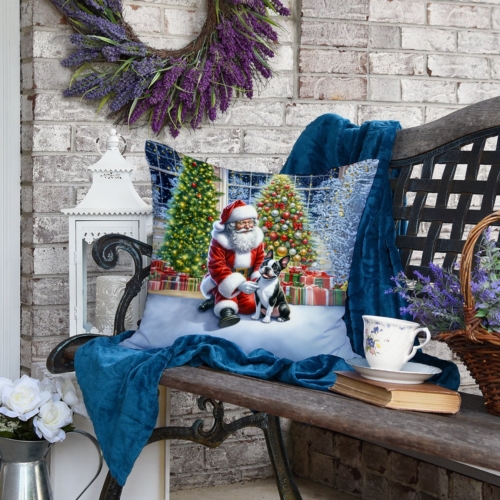 Throw Pillow featuring breed specific Boston Terrier artwork. Celebrate Christmas with this Christmas Pillow. Revitalize your outdoor or indoor living space with Caroline’s Treasures 18×18 Fabric Decorative Pillow. With a generously sized dimension of approximately 18 inches by 18 inches, this pillow makes a comfortable and aesthetic addition to any seating area. Made from a unique, water-resistant material developed by Caroline’s Treasures, the pillow sham is 100% polyester fabric that’s durable and ready to weather any condition. Its vibrant, full-color artwork will not fade over time as it is dyed with color-fast dyes. Whether you place it on your patio furniture, porch, veranda, or indoor couch, its soft canvas fabric ensures a cozy experience. The pillow is handcrafted in the United States, featuring a sham created from three pieces of fabric and a polyester insert for enduring shape and overstuffed comfort. Despite being robustly built to endure the outdoors, it is as soft and snug as your favorite indoor cushions. Please note, as all our pillows are handmade, sizes may vary slightly, adding to the charm of this unique decorative item.