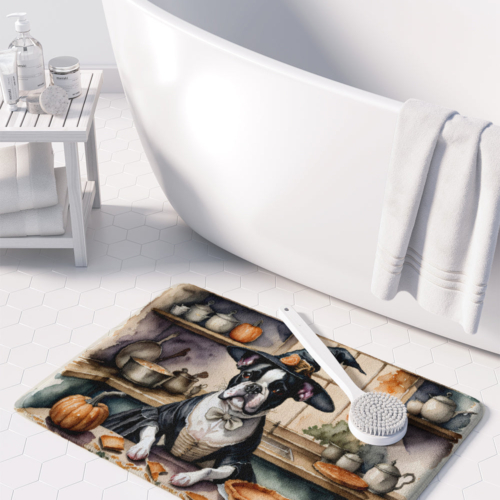Memory Foam Kitchen Mat featuring breed specific Boston Terrier artwork. Celebrate Halloween with this Halloween Floor Mat. Transform your floor into a work of art with Caroline’s Treasures’ Memory Foam Mat. This mat offers not only a stunning visual appeal but also a luxurious, plush feel that’s incredibly comfortable to the touch. It’s a versatile, machine-washable mat designed for both bath and kitchen use, ensuring you experience the best in comfort and convenience. Care Instructions: Maintaining this memory foam mat is a breeze. Simply follow the care instructions on the product tag. It’s recommended to wash in cold water and dry on a low-temperature setting in the dryer. This ensures the mat retains its quality and longevity, allowing you to enjoy its beauty and comfort for a long time. Caroline’s Treasures’ Memory Foam Mat Machine Washable is the perfect blend of artistry, comfort, and practicality, making it a standout addition to any space. Upgrade your home decor with this versatile and stylish mat today.