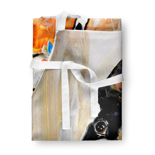 Elevate your cooking, baking, and grilling experiences with our versatile Kitchen or BBQ Apron. This Bib Style apron isn’t just limited to culinary activities – it also serves as an excellent baking apron, artist apron, server apron, gardening apron, or even a dog grooming apron. The apron showcases vibrant full-color artwork contributed by one of our talented artists, bringing a dash of style to your daily tasks. With dimensions of approximately 27″W x 30″H, it provides ample coverage to protect your clothing from spills and splashes. Our apron is meticulously crafted from 100% Ultra Spun Polyester, known for its durability and lightweight nature. The apron comes with white tie straps, ensuring a comfortable and adjustable fit for all. It’s a perfect choice for kitchen apron enthusiasts, whether you are a woman or a man. Designed for easy maintenance, this apron is fully machine washable. The quick-drying polyester material actively reduces staining, keeping your apron looking fresh and new for longer. Our beautifully designed apron isn’t just a functional kitchen accessory – it’s a fashion statement in the culinary world!