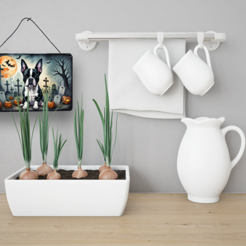 Wall or Door Hanging Prints featuring breed specific Boston Terrier artwork. Celebrate Halloween with this Halloween Metal Print. Add a splash of color and artistic flair to any indoor or outdoor space with our Aluminum Artwork Prints. These unique prints, featuring full-color, multicolor designs, provide a versatile decorative touch that can enhance a kitchen, bathroom, office, outdoor patio, or even the front door area. Each print measures 8 inches by 12 inches, making it the perfect size to catch the eye without overwhelming your space. Constructed with durability in mind, these prints can be placed outdoors and withstand direct sunlight for a significant amount of time before any fading begins. Designed for easy installation, each print features a black hanging rope and has a lightweight profile. This allows for quick hanging with just about any nail or screw. For safety and aesthetic appeal, the print’s corners are gently rounded. The back of the print showcases a brushed silver color for an added touch of elegance. Rust and fade-resistant, these Aluminum Artwork Prints are not only beautiful but are also built to last. Elevate your space with these stunning prints, crafted with care and artistic passion.