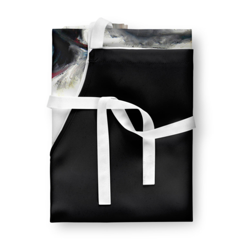 Elevate your cooking, baking, and grilling experiences with our versatile Kitchen or BBQ Apron. This Bib Style apron isn’t just limited to culinary activities – it also serves as an excellent baking apron, artist apron, server apron, gardening apron, or even a dog grooming apron. The apron showcases vibrant full-color artwork contributed by one of our talented artists, bringing a dash of style to your daily tasks. With dimensions of approximately 27″W x 30″H, it provides ample coverage to protect your clothing from spills and splashes. Our apron is meticulously crafted from 100% Ultra Spun Polyester, known for its durability and lightweight nature. The apron comes with white tie straps, ensuring a comfortable and adjustable fit for all. It’s a perfect choice for kitchen apron enthusiasts, whether you are a woman or a man. Designed for easy maintenance, this apron is fully machine washable. The quick-drying polyester material actively reduces staining, keeping your apron looking fresh and new for longer. Our beautifully designed apron isn’t just a functional kitchen accessory – it’s a fashion statement in the culinary world!