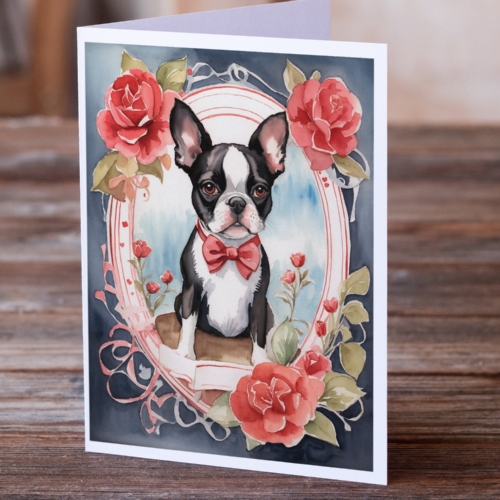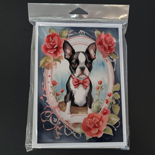 Boston Terrier Valentine Roses Greeting Cards Pack of 8