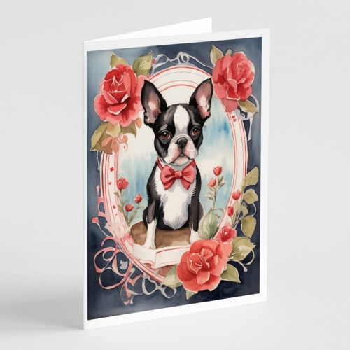 Boston Terrier Valentine Roses Greeting Cards Pack of 8