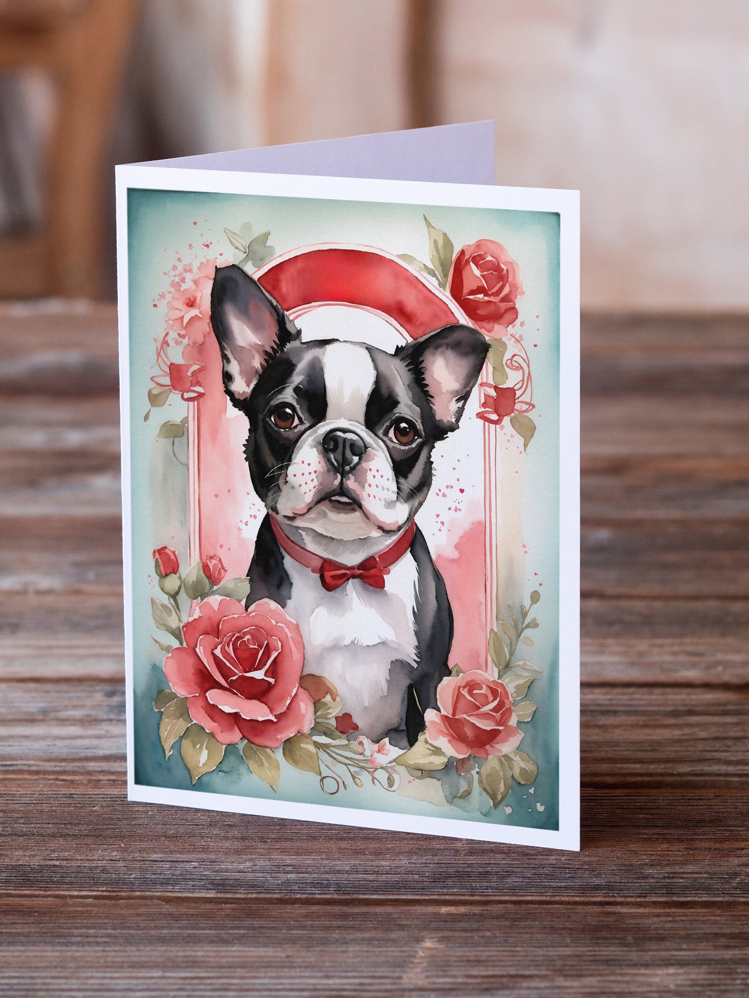 Greeting Cards Pack of 8 featuring breed specific Boston Terrier artwork. Celebrate Valentine’s Day with this Valentine’s Day . Celebrate special moments with Caroline’s Treasures Printed Greeting Card Pack. This pack includes eight beautifully folded 5×7 cards, accompanied by eight matching white envelopes. With blank interiors, these cards provide ample space for your personalized messages and heartfelt holiday greetings. Each card features captivating full-color artwork, meticulously printed in our facility on high-quality 80 lb cover stock or 216 GSM. The super smooth finish of the white cards enhances the visual impact of the artwork, creating a truly stunning presentation. Designed by our talented in-house artists or licensed artists, the artwork on these cards showcases their creativity and attention to detail. From vibrant illustrations to captivating designs, each card tells its own unique story. Whether it’s for birthdays, anniversaries, holidays, or any special occasion, Caroline’s Treasures Greeting Card Pack is the perfect way to convey your heartfelt sentiments. Share joy, love, and warm wishes with these exquisite cards and make every moment unforgettable.
