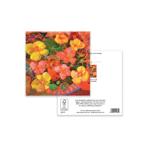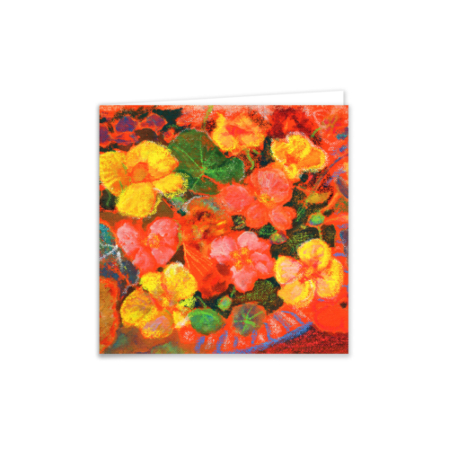 Bright Orange and Yellow greeting card of our popular **Nasturtiums**, sold in **wholesale packs of 6** . Printed on premium FSC-certified cardstock, this 15x15cm card is ideal for floral and botanical collections.
