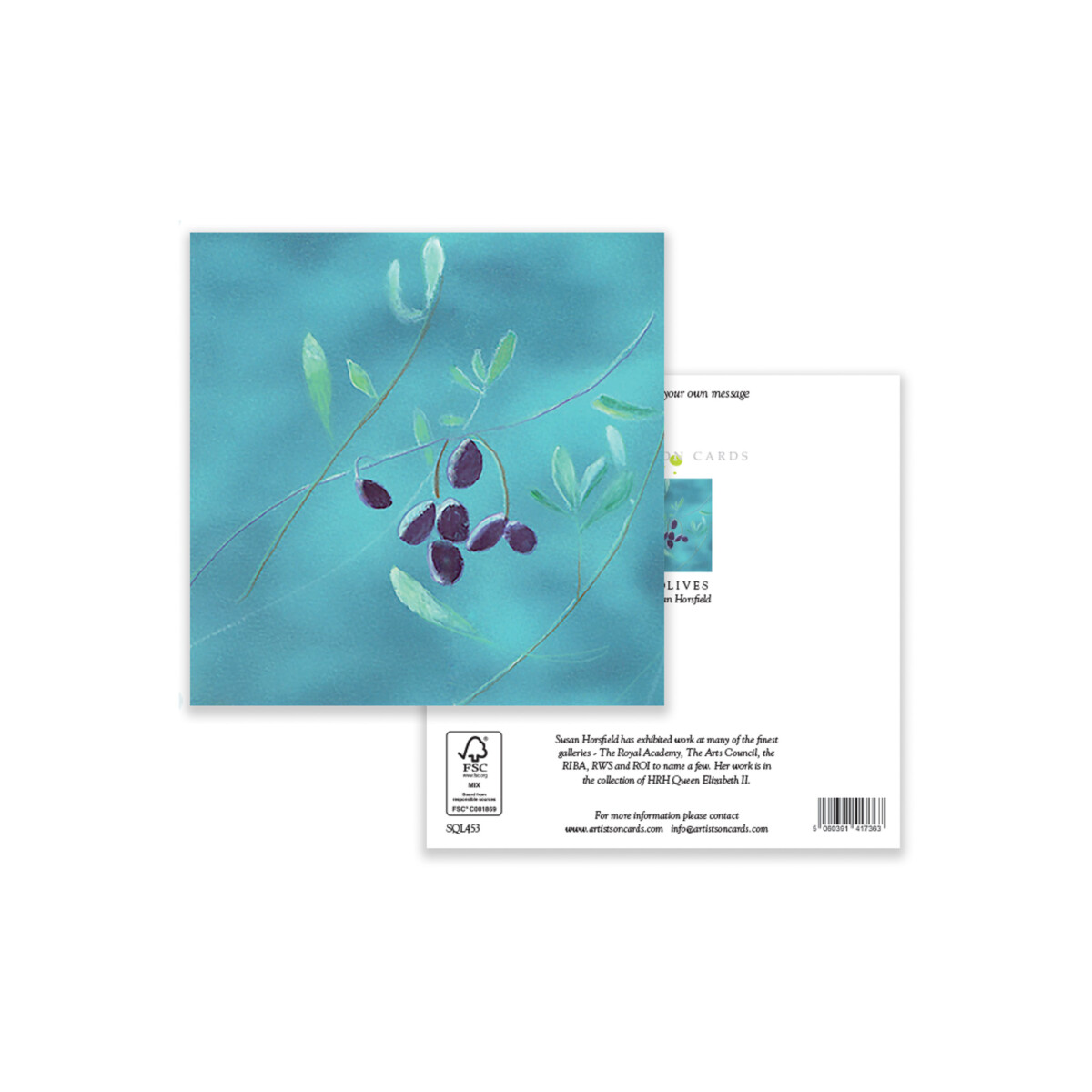 Soft, painterly study of a Mediterranean olive branch. Blank inside for any occasion; gentle botanical style in gouache/pastel. per card). Printed on premium FSC-certified cardstock, this 15x15cm card is ideal for floral and botanical collections.