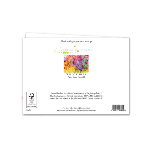 A dazzling summer verge—rosebay willowherb painted with energetic pastel marks over luminous watercolour. Sits beautifully in “Botanical”, “British Countryside” and “Colour Pop” shelves.