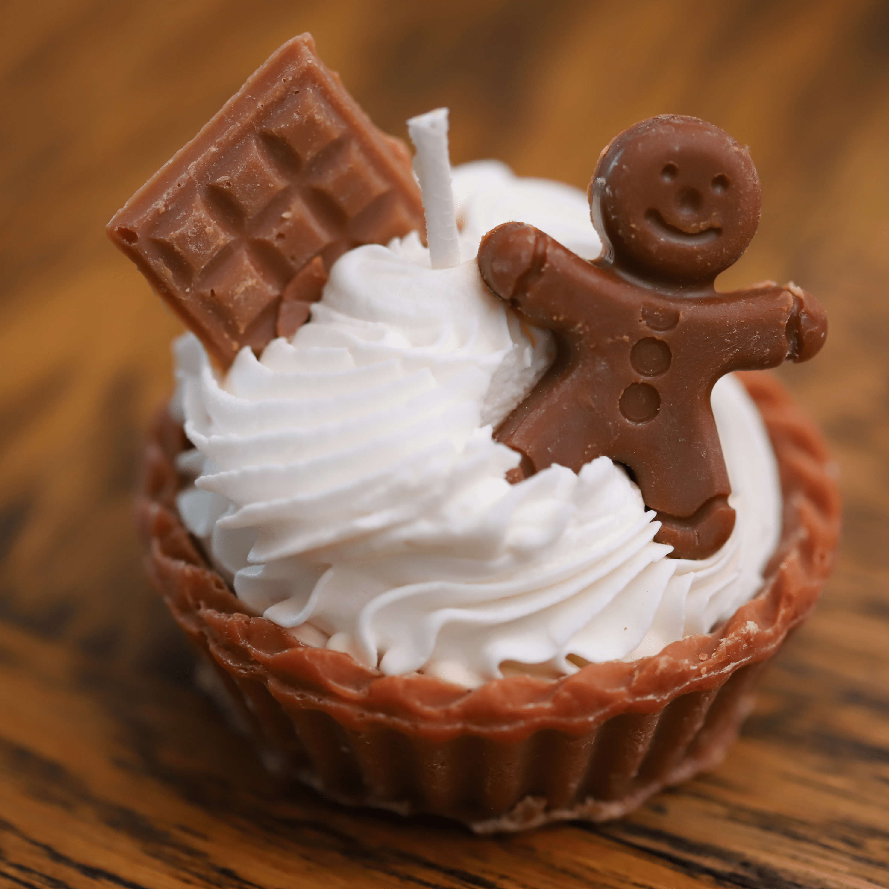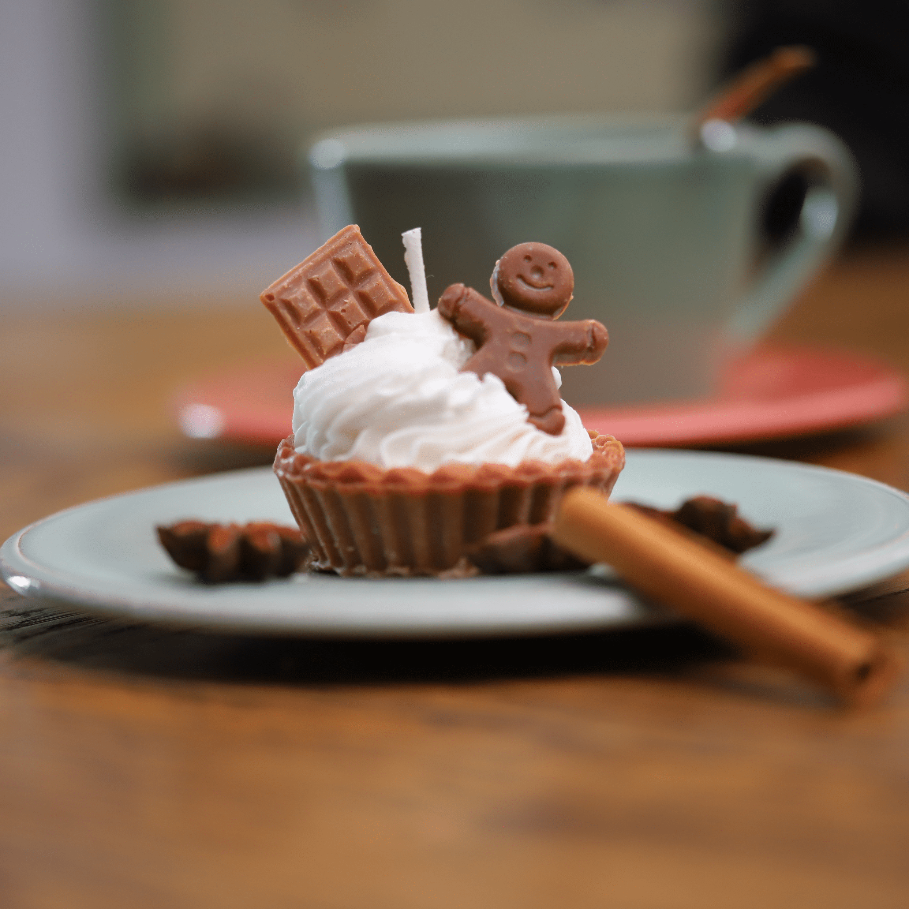 Bougie tartelette pain d’épices : une gourmandise chaleureuse Plongez dans l’ambiance des fêtes avec la bougie tartelette pain d’épices. Réalisée avec un souci du détail remarquable, cette bougie rappelle les douceurs de l’hiver grâce à son parfum envoûtant de pain d’épices. Présentée dans un format tartelette, elle est ornée d’un adorable bonhomme pain d’épices et d’un carré de chocolat, le tout surmonté d’une cire en forme de chantilly pour un rendu gourmand et festif. Un design ludique et gourmand Parfum pain d’épices : une senteur épicée et réconfortante qui évoque les fêtes de fin d’année. Cire chantilly : une finition réaliste et appétissante. Décorations festives : bonhomme pain d’épices et carré de chocolat pour une touche ludique. Pot en tartelette : un design original qui attire tous les regards. Une bougie qui sent bon les fêtes Ajoutez une touche festive et chaleureuse à votre intérieur avec la bougie tartelette pain d’épices. Parfaite comme décoration de Noël ou pour offrir un cadeau plein de gourmandise et de charme.
