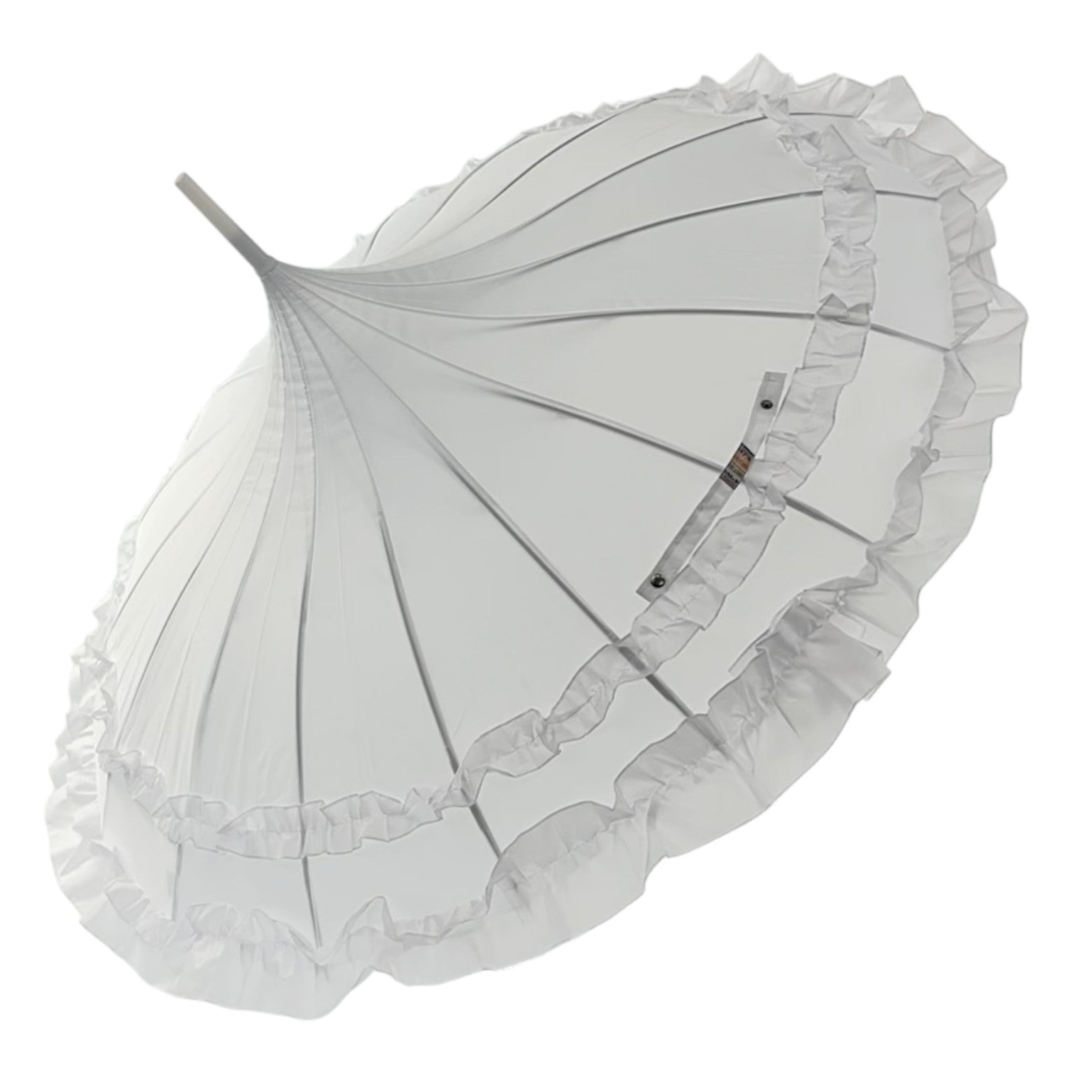 Introducing the Soake Frilled Pagoda Umbrella – a perfect blend of elegance and functionality, designed to elevate your rainy day style. This umbrella features a beautiful pagoda shape, inspired by traditional Asian architecture, giving it a unique and sophisticated silhouette that stands out in any crowd. The canopy is made from Pongee 190T material, known for its excellent water-resistant properties and durability. This ensures you stay dry and comfortable even during the heaviest downpours. The umbrella’s steel shaft and ribs provide exceptional strength and stability, making it a reliable companion in windy conditions. Designed with a manual opening mechanism, the Soake Frilled Pagoda Umbrella is easy to operate, allowing you to quickly shield yourself from the rain. The classic stick style adds a touch of timeless elegance, making it a versatile accessory that complements any outfit, whether you’re heading to a formal event or simply running errands. The delicate frills around the edges of the canopy add a feminine and playful touch, making this umbrella a stylish choice for fashion-conscious individuals. The comfortable handle ensures a secure grip, making it easy to carry and use. Compact and convenient, this umbrella can be easily stored in your bag or car, ensuring you’re always prepared for unexpected weather changes. Elevate your rainy day experience with the Soake Frilled Pagoda Umbrella – where timeless design meets modern functionality, offering both style and practicality in one beautiful package.