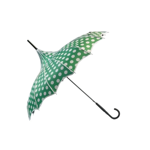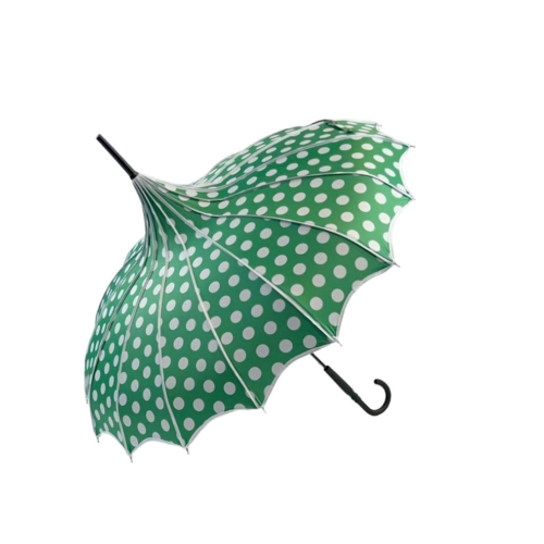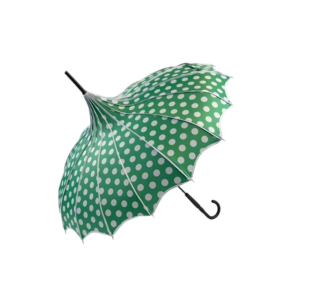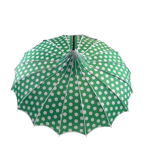Boutique Polka Dot Ribbed Pagoda Umbrella Green