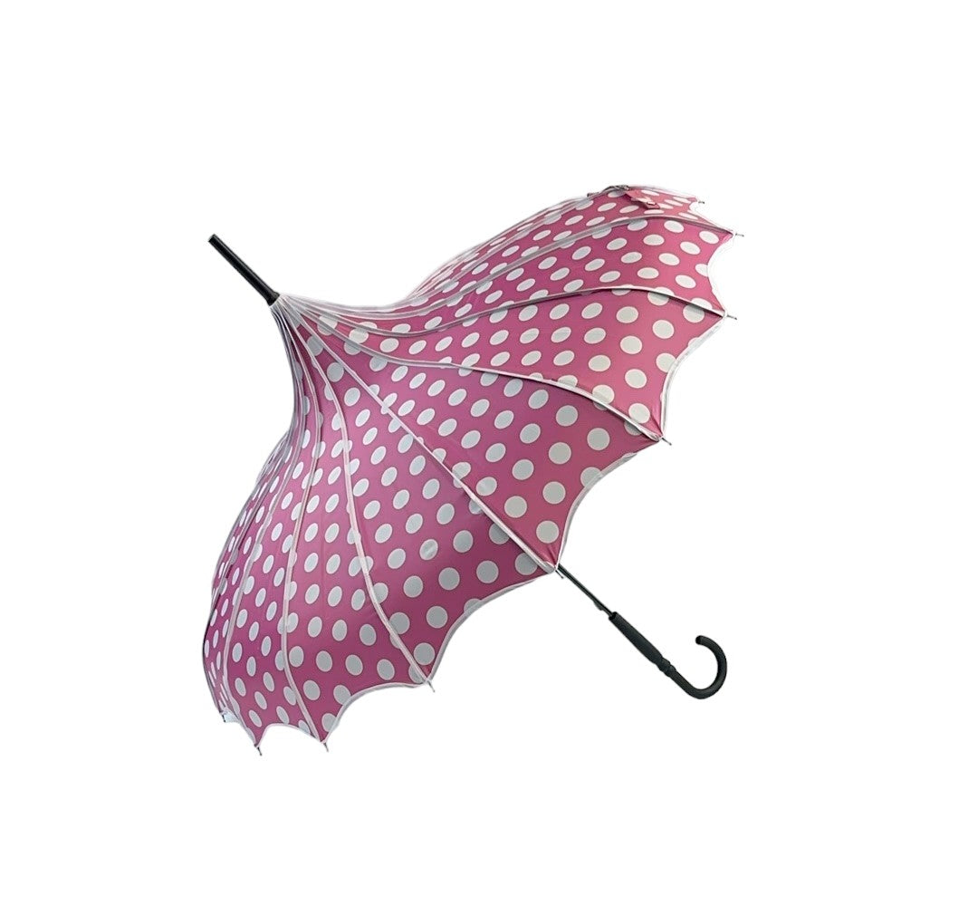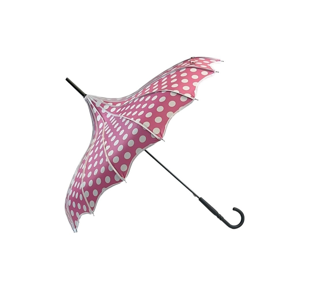 Introducing the Soake Boutique Polka Dot Ribbed Pagoda Umbrellas – a perfect blend of elegance, charm, and practicality. These umbrellas are designed to not only protect you from the rain but also to shield you from the sun’s harmful rays, thanks to their full UV protection. With their unique pagoda shape, ribbed design, and playful polka dot patterns, these umbrellas are more than just functional accessories; they are stylish statements that add a touch of sophistication to any outfit. The first thing that catches the eye is the distinctive pagoda shape of these umbrellas. Inspired by traditional Asian architecture, the pagoda design adds an exotic and elegant flair. The ribbed structure enhances the umbrella’s durability and aesthetic appeal, creating a visually stunning accessory that stands out in any crowd. The playful polka dot patterns add a touch of whimsy, making these umbrellas a delightful addition to your collection. Crafted from the finest materials, the canopy of the Soake Boutique Polka Dot Ribbed Pagoda Umbrellas is made from high-quality fabric that offers superior waterproof protection. This ensures that you stay dry even in the heaviest downpours. Additionally, the canopy provides full UV protection, shielding you from the sun’s harmful rays and making these umbrellas perfect for both rainy and sunny days. The fabric is resistant to wear and tear, ensuring that your umbrella remains in pristine condition for years to come. The frame of the Soake Boutique Polka Dot Ribbed Pagoda Umbrellas is constructed from high-grade materials, including a sturdy steel shaft and flexible fiberglass ribs. This combination provides exceptional strength and flexibility, allowing the umbrella to withstand strong winds without breaking or bending out of shape. The 16-rib design adds an extra layer of resilience, ensuring that the umbrella remains sturdy and reliable in all weather conditions. The handle of the Soake Boutique Polka Dot Ribbed Pagoda Umbrellas is designed with both comfort and style in mind. Made from high-quality materials, the handle offers a comfortable grip, making it easy to carry and use. The ergonomic design ensures that the umbrella feels balanced and secure in your hand, even during long walks in the rain. The handle is also elegantly finished, adding a touch of luxury to the overall design. One of the standout features of the Soake Boutique Polka Dot Ribbed Pagoda Umbrellas is their auto-opening mechanism. With just the press of a button, the umbrella smoothly and effortlessly opens, ensuring that you are always prepared for sudden showers. This convenient feature makes the umbrella a practical choice for those on the go, whether you’re commuting to work or attending a special event. Available in a variety of charming polka dot patterns, the Soake Boutique Polka Dot Ribbed Pagoda Umbrellas offer something for everyone. Whether you prefer classic black and white dots or vibrant, colorful designs, there is a pattern to match your style and personality. These umbrellas are not just practical accessories; they are reflections of your unique taste and appreciation for quality craftsmanship. In summary, the Soake Boutique Polka Dot Ribbed Pagoda Umbrellas are the perfect blend of beauty, functionality, and protection. With their stunning designs, robust construction, and convenient features, these umbrellas are a must-have accessory for anyone who values elegance and sophistication. Embrace the rain and the sun with the Soake Boutique Polka Dot Ribbed Pagoda Umbrellas and let your style shine, no matter the weather.