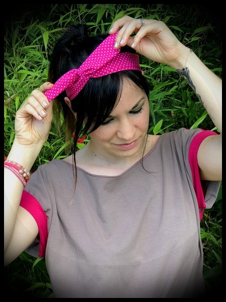 This cute hairband will bring a retro touch to your outfit! Made out of cotton fabric with polka dots. It will stay nicely in shape with an invisible wire.