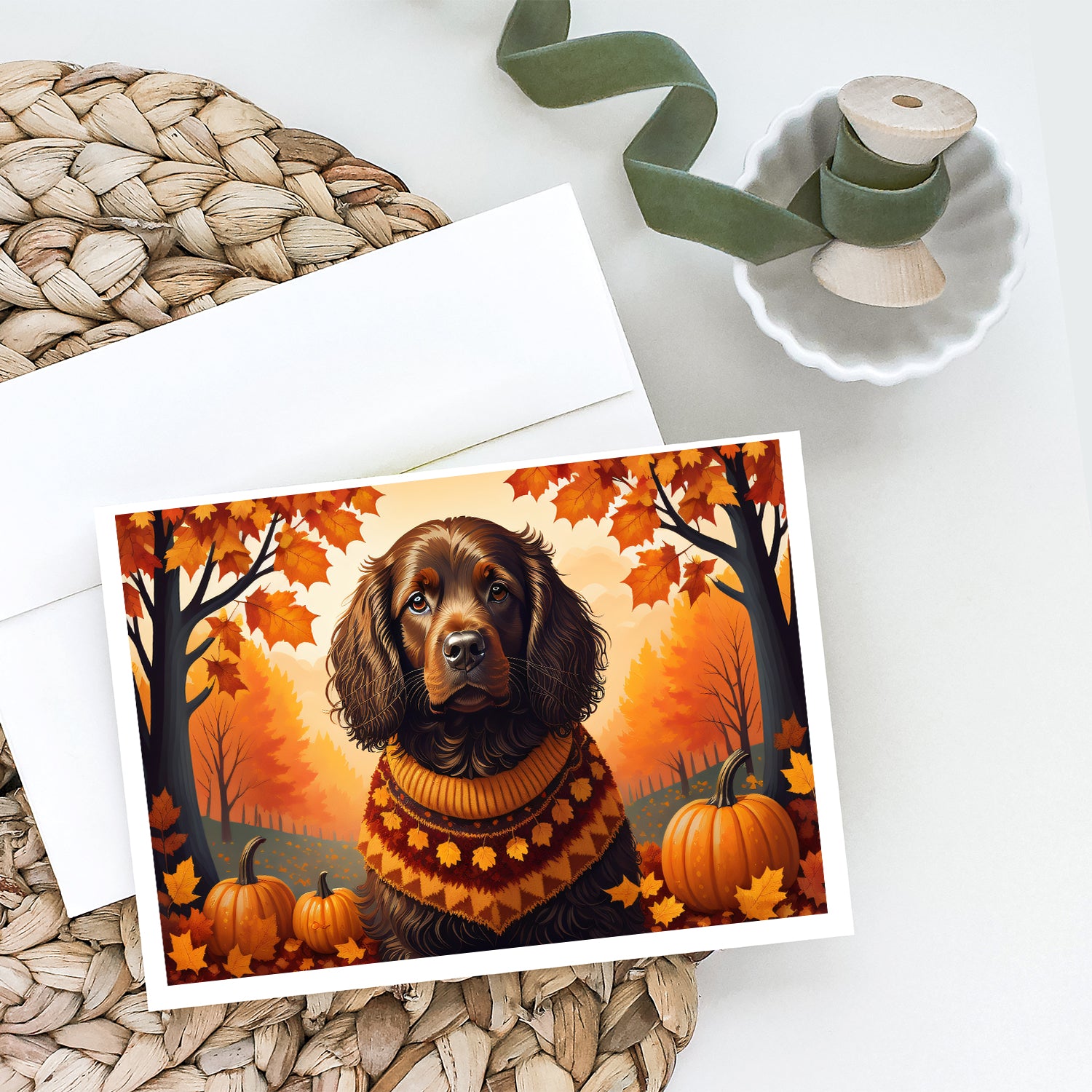 Boykin Spaniel Fall Greeting Cards Pack of 8