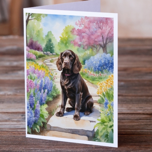 Boykin Spaniel Spring Path Greeting Cards Pack of 8