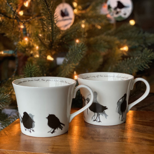The words around the rim of this robin cup are from a poem called The redbreast and the butterfly” by English poet, William Wordsworth (1770-1850). Wordsworth lived in the Lake District and was part of the Romantic movement of the 1800s. This loyal or pious bird will guard its territory to the death if need be but, for many, a Robin symbolises that a lost one is near. They are also known to symbolise new beginnings and a life, bringing with them fortune and good luck.