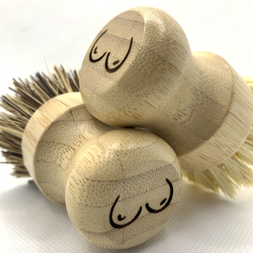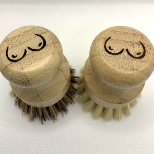 2 X ecojiko bamboo scrubbers with sisal bristles with BOOBS! (one scrubber for lighter use, one with harder bristles) 8 x 3.5 x 3.5cm