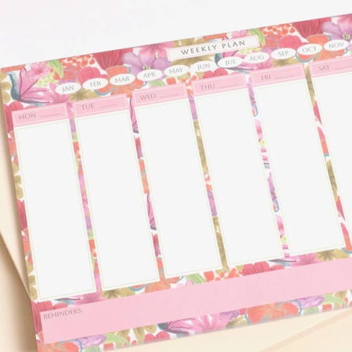 Designed in A4 with space for daily tasks, notes and reminders, it’s perfect for keeping on top of busy weeks. With 52 tear-off pages, it’s easy to display your schedule on a fridge or noticeboard.Makes a practical and joyful gift for a friend, student or anyone who loves to stay organised.DimensionsA4width 29.7cm x height 21cm x depth 0.7cmMade fromPaper