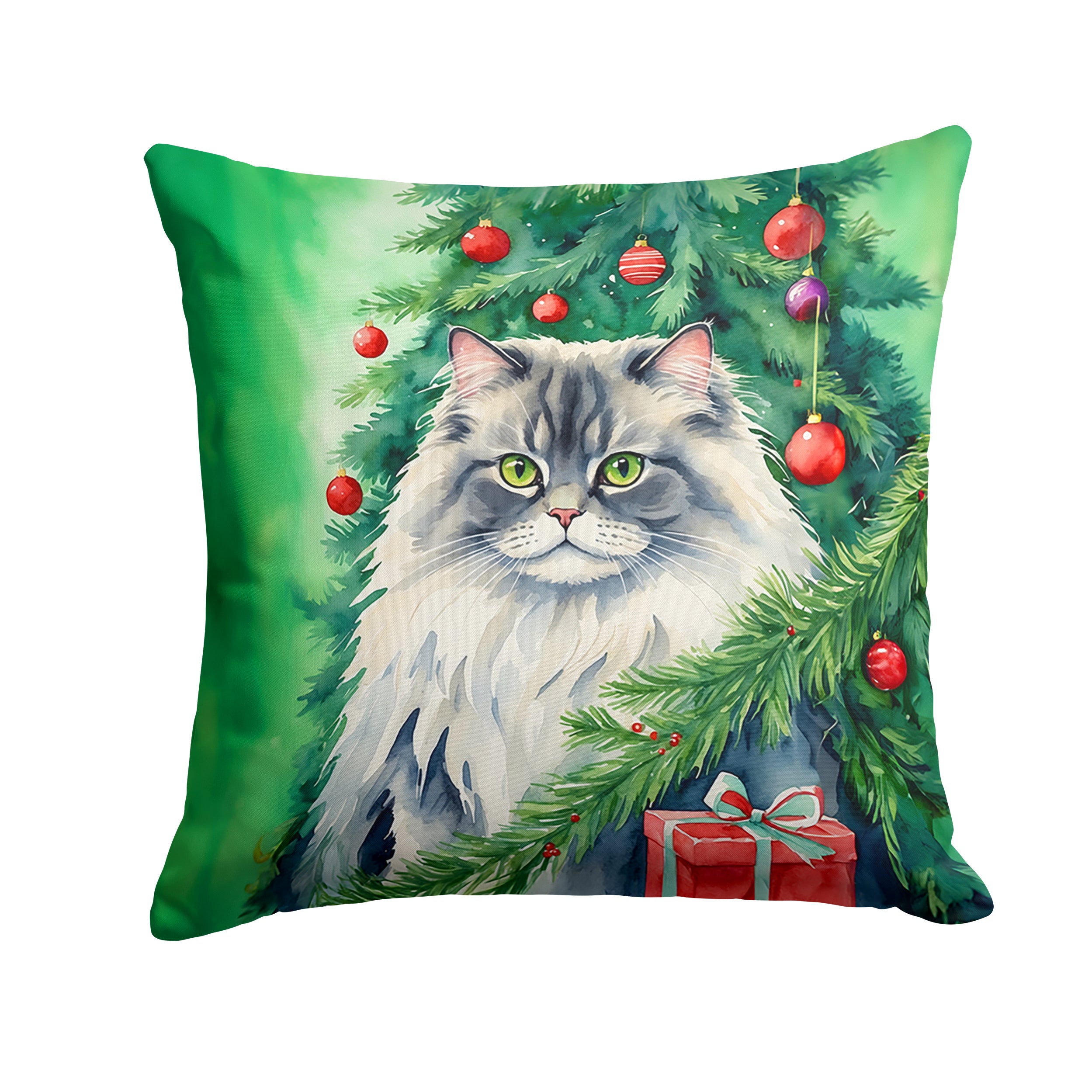 British Longhair Cat By the Christmas Tree Throw Pillow