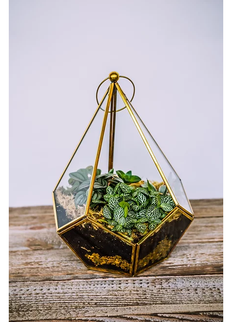 Accent your living space in a refined fashion by adding this bronze terrarium to the mix. Perfect for showcasing your favourite flora, this geometric accent with a hoop for easy suspension is a surefire way to make your furnishings flourish. No hook? No problem. This waterproof terrarium features a flat base for easy styling on sills and shelving.