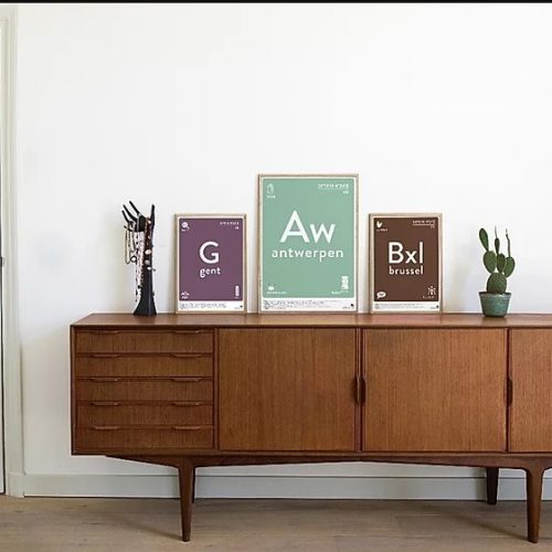 The posters are printed on off-white Biotop 250 gr paper (FSC/TCF), the cards on 300 gr, with a sustainable printing technique and a minimum waste of inks.