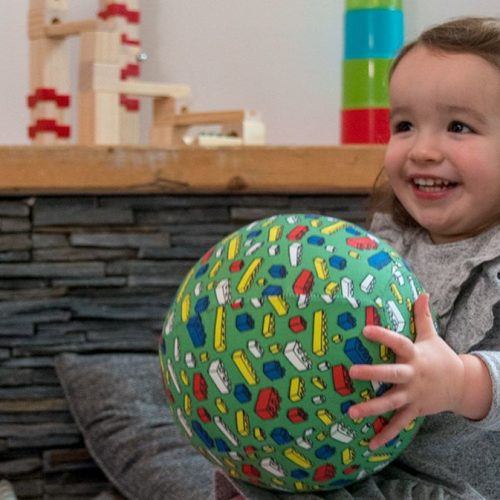 Intriguing for little ones with bright colours and an intriguing blocks print – just like their favourite toys.