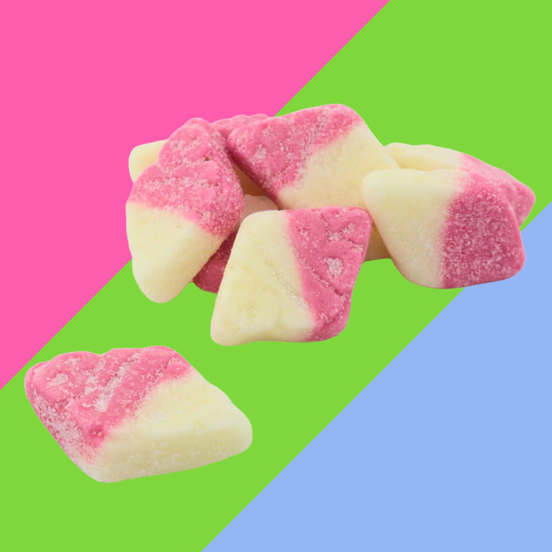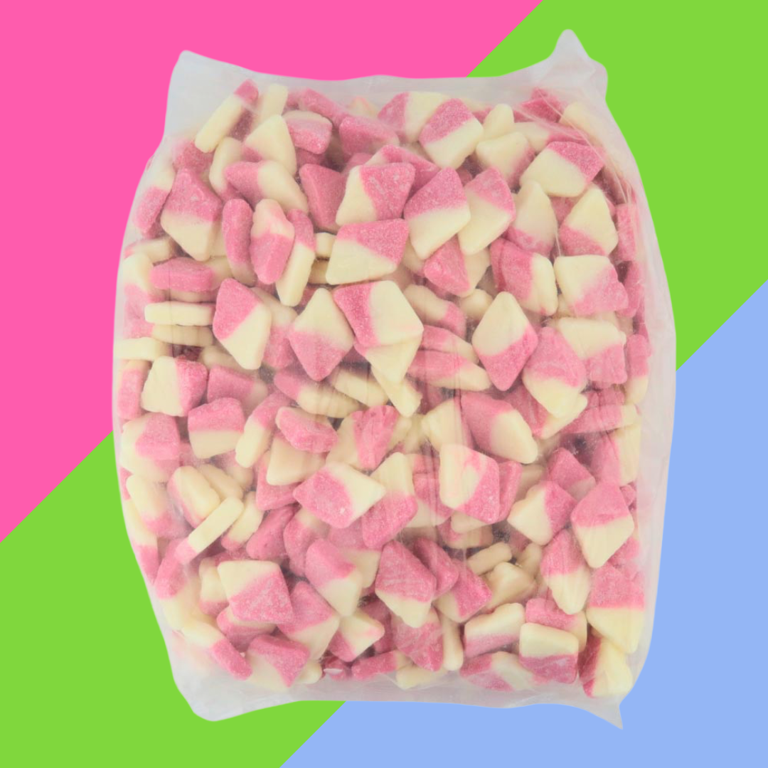 Strawberry and vanilla flavoured foam sweets Perfect for any sweet mix 2.6kg bulk box BUBS Strawberry and Vanilla Mini Rombs has the perfect flavour combination. Enjoy the combination of strawberry and vanilla flavour, along with a a touch of sugar that gives this sweet treat a unique sweetness. No wonder it is so appreciated. With the perfect chewiness and tasty sweetness, these fruity mini treats can be enjoyed by all – why not package into smaller bags with other pick ‘n’ mix sweets to create unique treats.