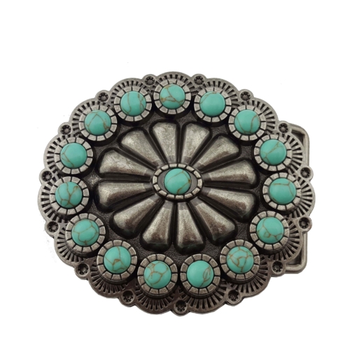 Buckle: Oval Western Turquoise Stone Belt Buckle