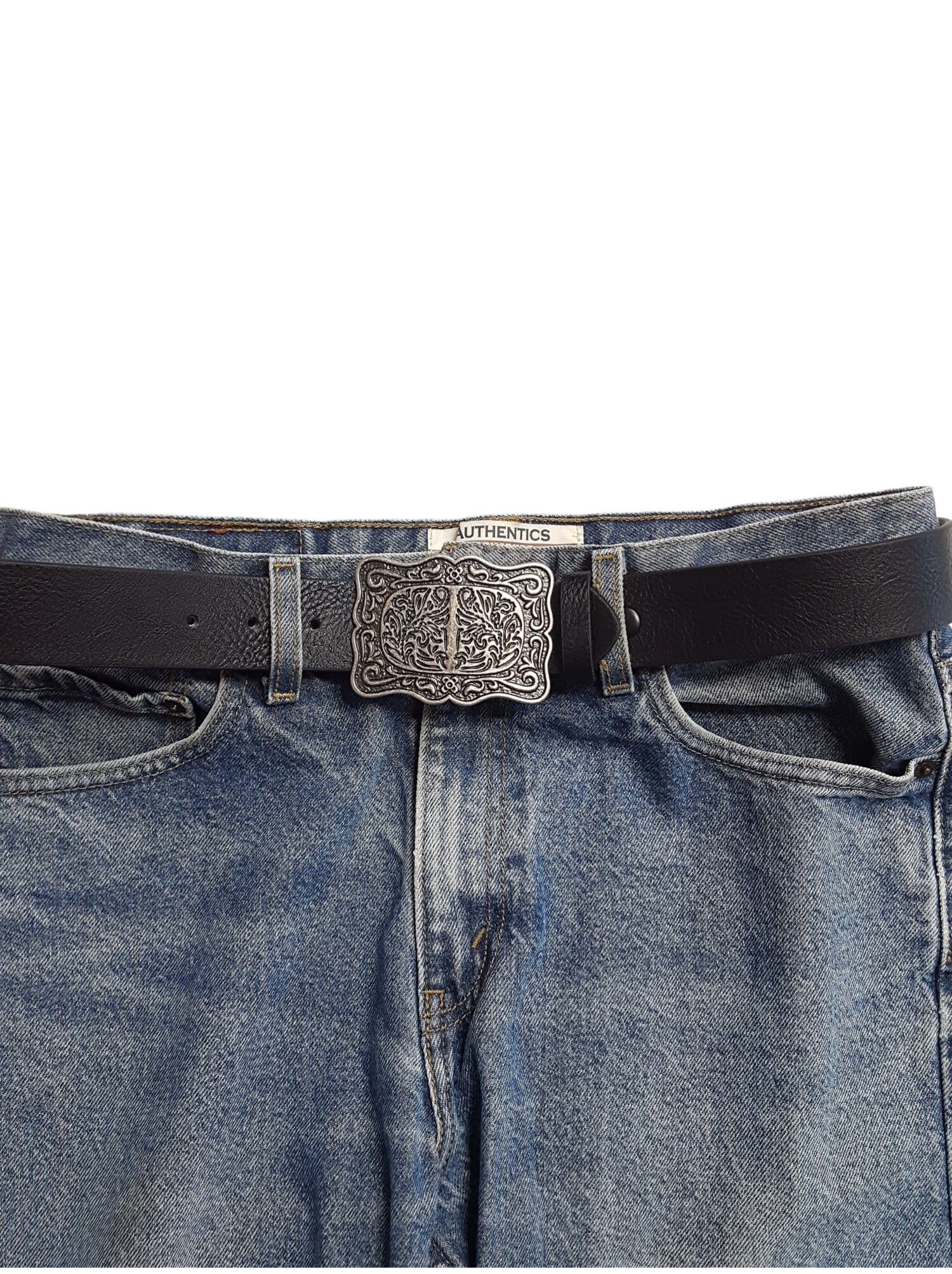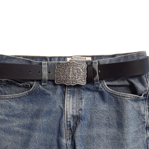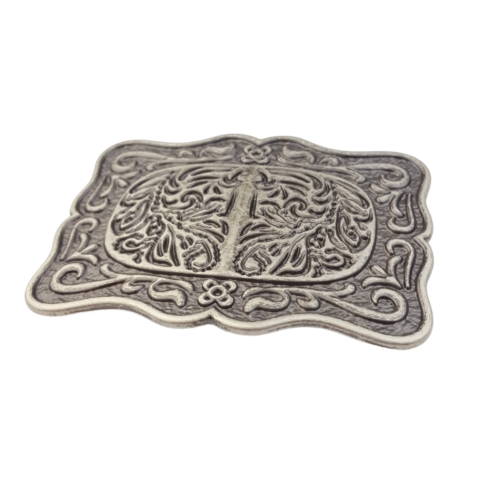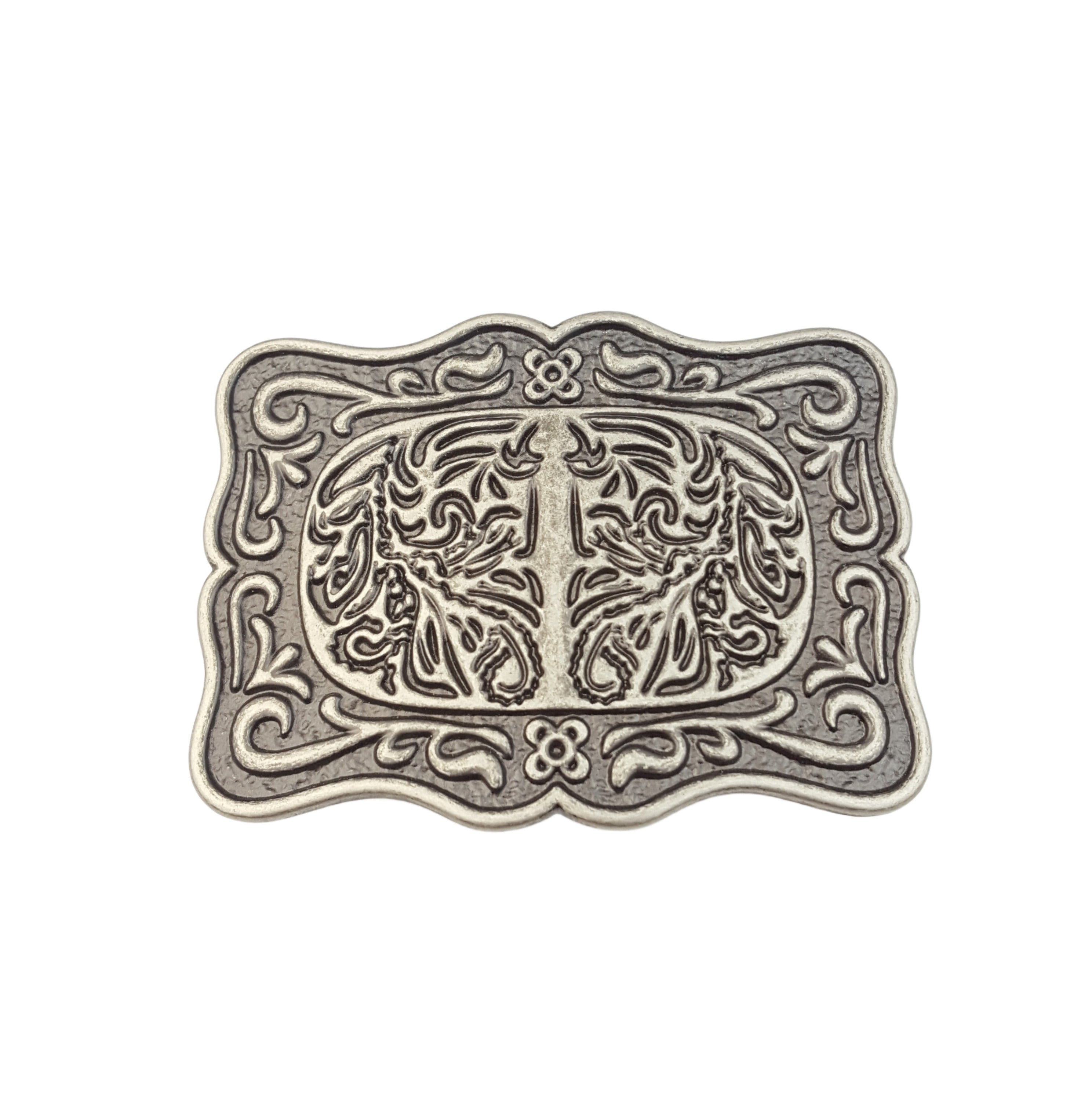 Buckle: Rectangular Floral-Etched Belt Buckle
