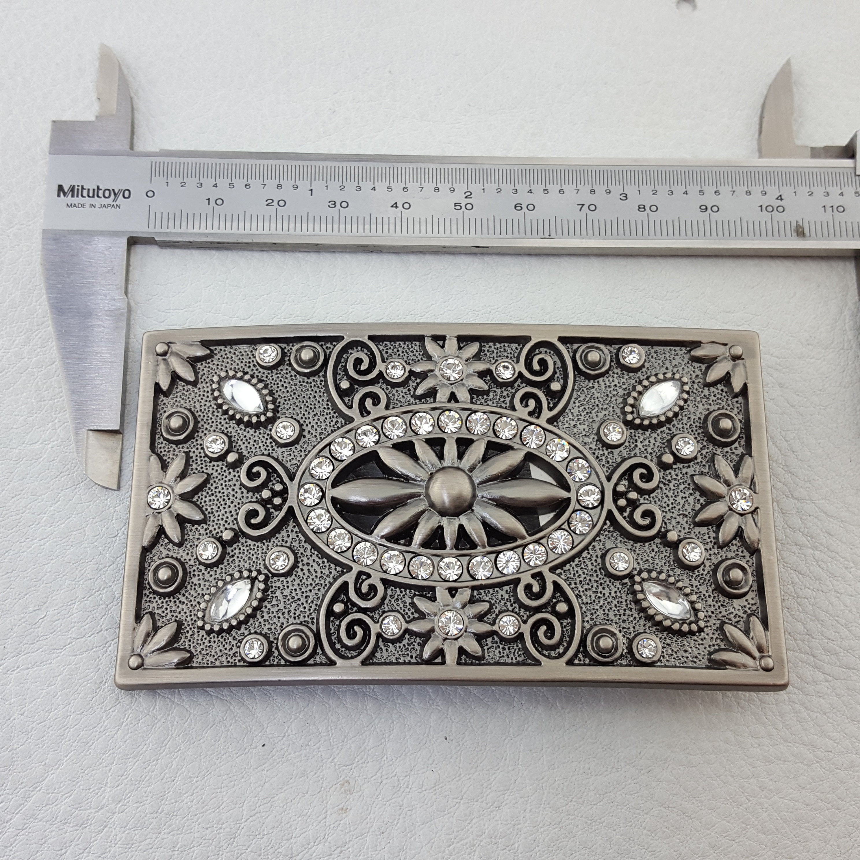 Buckle Sale: Rectangular Belt Buckle with Crystal Flower Design