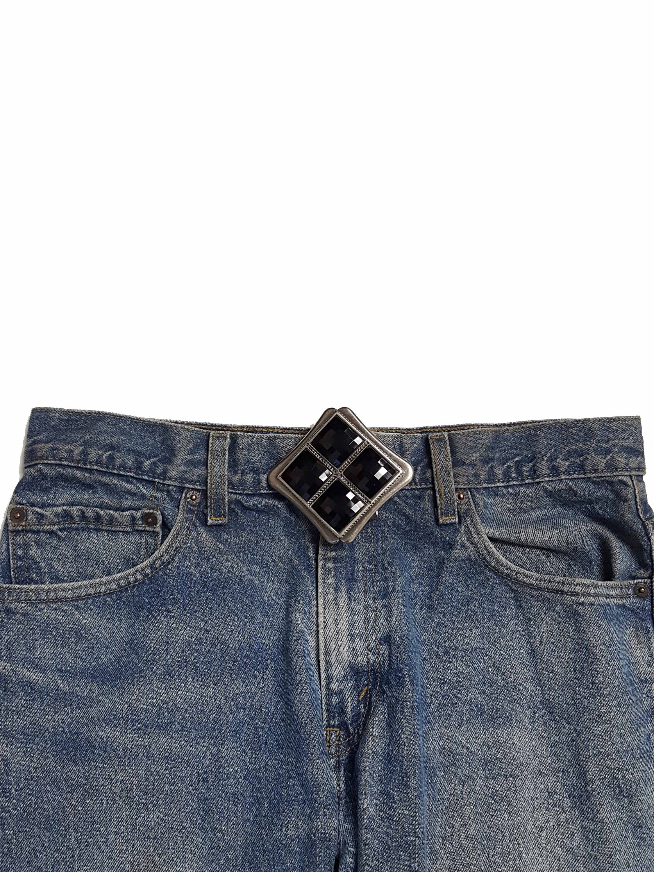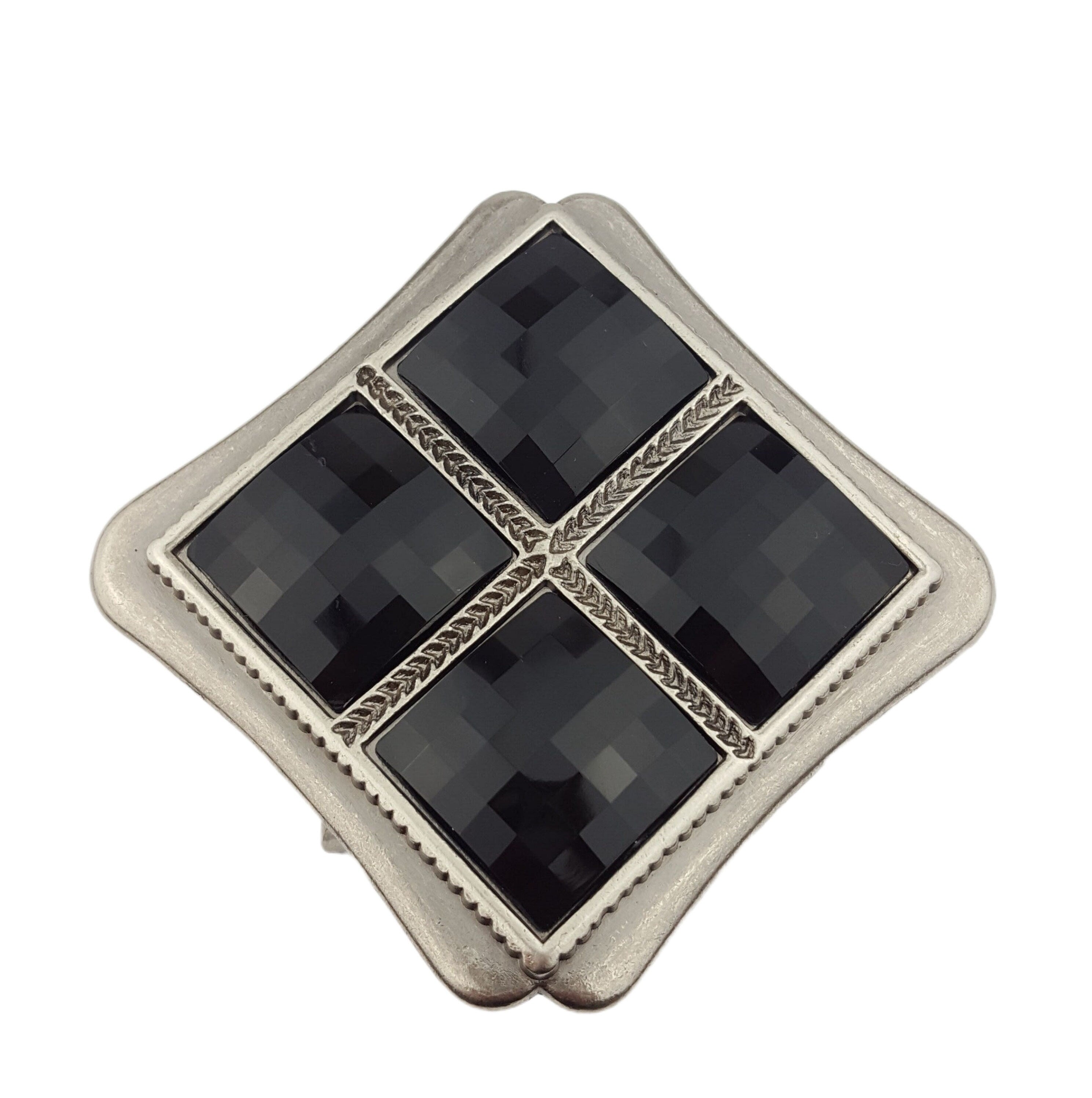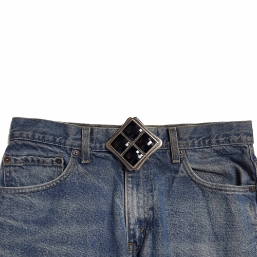 Dimension is about 3.75″ by 3.75″ Fits belt strap 1.75″ or less In a antique silver finish In the middle are 4 acrylic Jet stones This is how the buckle wear, exactly like the photo, please message us if question