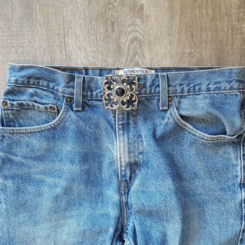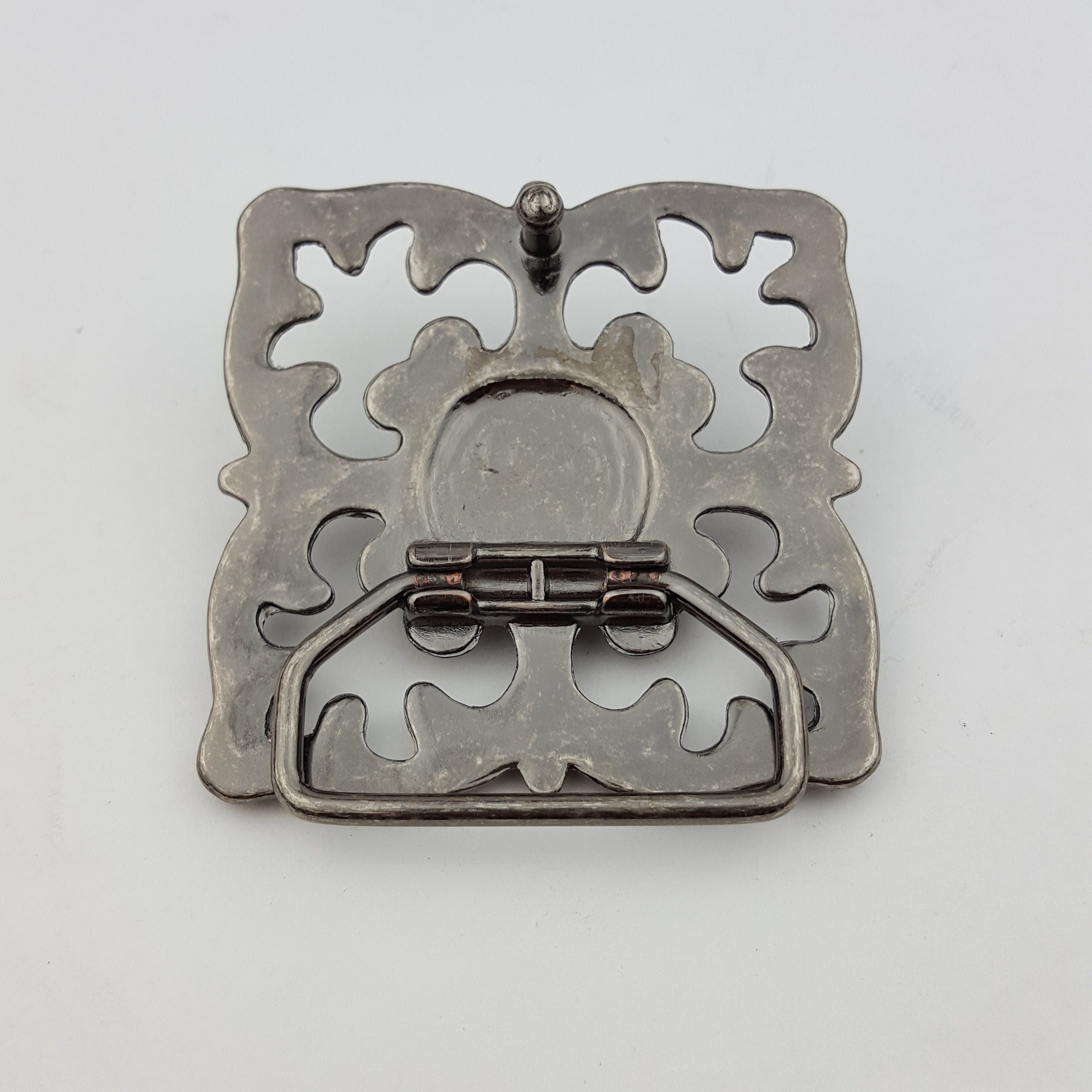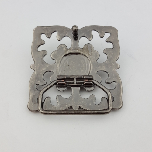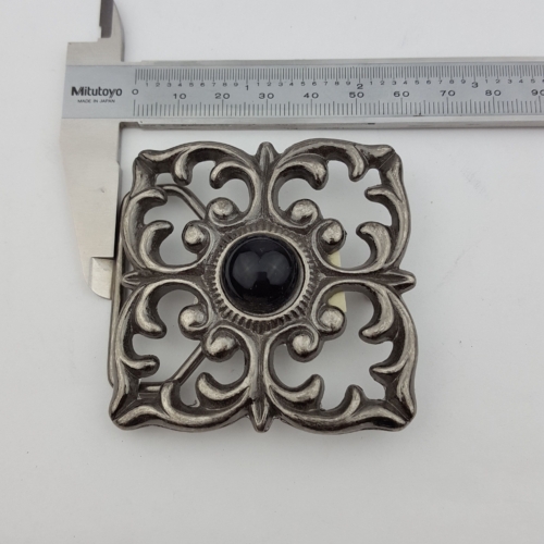 Western Buckle with Round Black Bead in the centerBuckle finish in dark antique silverFits Belt strap width 1.5″ or 38 mmBuckle dimension about 2.3″ by 2.3″