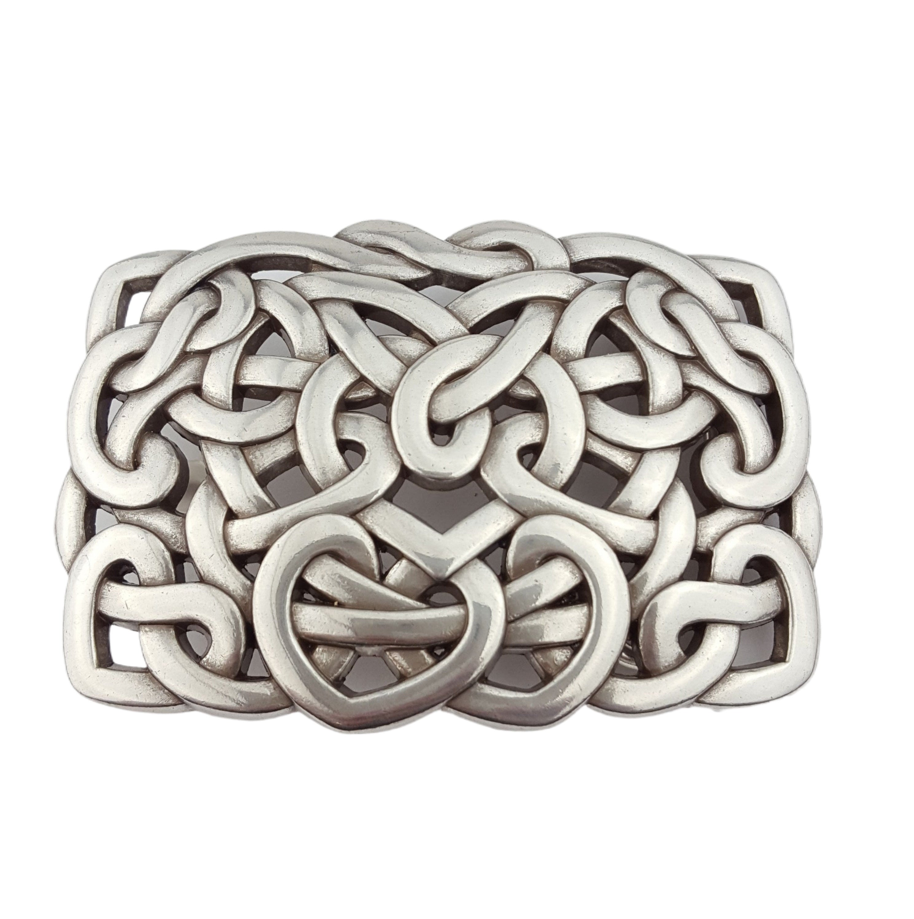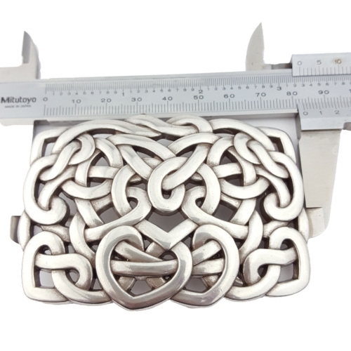 Fine Quality in matte silver metal plating finish Many Hearts all knotted together in the design dimension is 3.1″ x 2″ Will fit strap up to 1.75″ or 45 mm of width