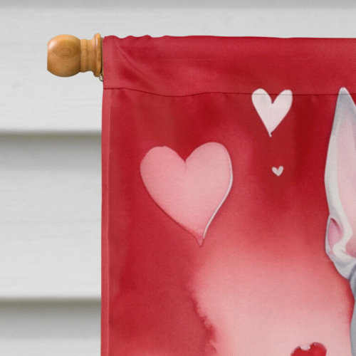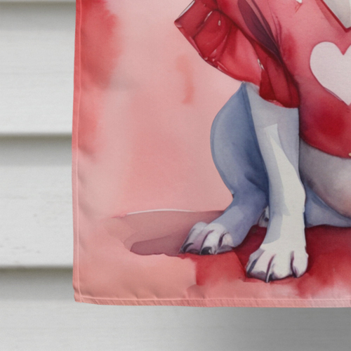 House Flag featuring breed specific Bull Terrier artwork. Celebrate Valentine’s Day with this Valentine’s Day Large Flag. Presenting our Heavy Duty Polyester House Size Decorative Sleeve Pole Flag, a vibrant addition to enhance the aesthetic appeal of your home. This large decorative flag, measuring approximately 28 x 40 inches, offers ample coverage and visibility. Each flag is meticulously sewn and made individually, ensuring a unique piece that may slightly vary in size. It’s a sleeve pole flag, designed to fit a standard decorative flag pole effortlessly. Please note that the flag pole and bracket are not included and should be purchased separately. What sets our flag apart is its dual-sided print. The design is mirrored on both sides of the fabric, allowing for uniform visibility regardless of the angle. Printed in full color, our flag showcases vibrant hues that truly stand out. To ensure lasting vibrancy and durability, the dyes are heat-set into the fabric. This ensures your flag remains bright and captivating through various weather conditions. Elevate the look of your home with our Heavy Duty Polyester House Size Decorative Sleeve Pole Flag!