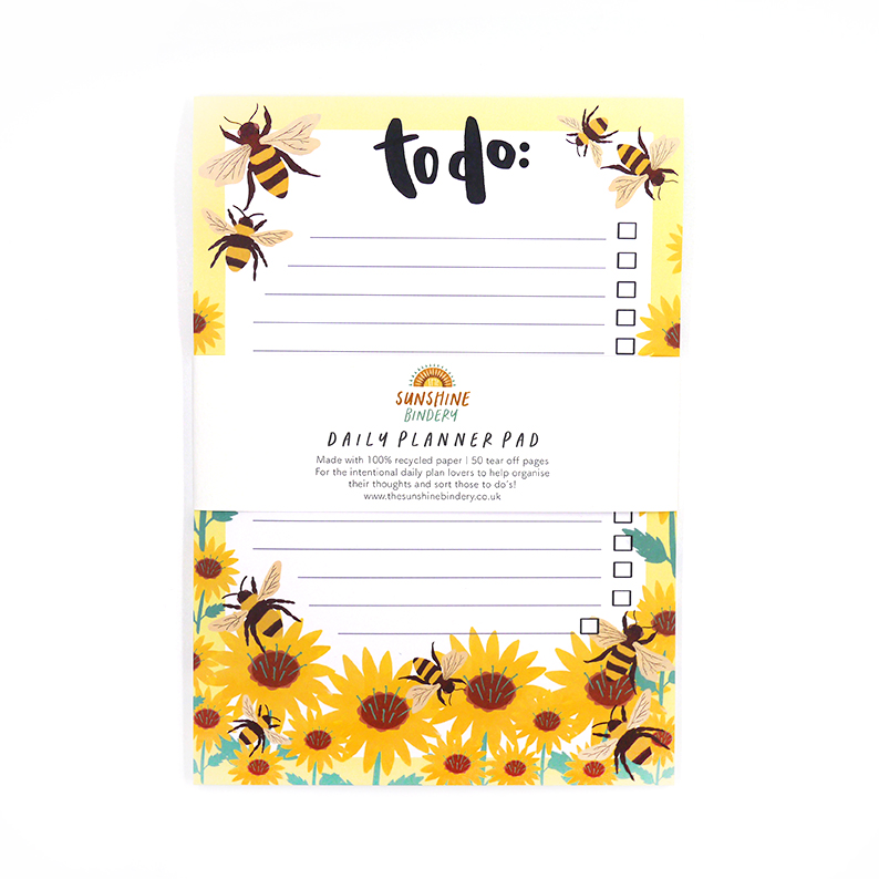 Fun and colourful, this bumble bee-themed A5 to do list planner notepad would make a great addition to anyone’s stationery and planner collection! Printed in the UK using 100% recycled paper, this to do list planner pad is light enough to pop in your bag for notes on the go or perfect as an office go to for getting those tasks done.