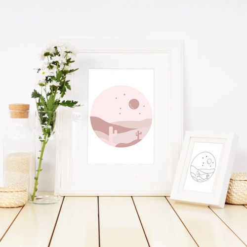 Bundle of 8 A4 Art Prints: 2x Minimalist Leaf Art Print, 2x Boho Landscape Art Print, 2x Minimalist Catctus Art Print, 2x Trendy Leaf Art Print