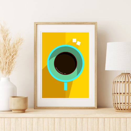 Bundle of 8 A4 Posters: 1x Time For Coffee Poster, 1x Two Sugars Coffee Poster, 1x Americano Coffee Poster, 1x A Perfect Blend Coffee Poster, 1x Pink Hot Coffee Poster, 1x Smooth Coffee Poster, 1x Pour Without Text Coffee Poster, 1x Pour Coffee Poster