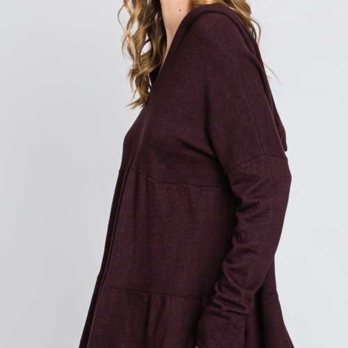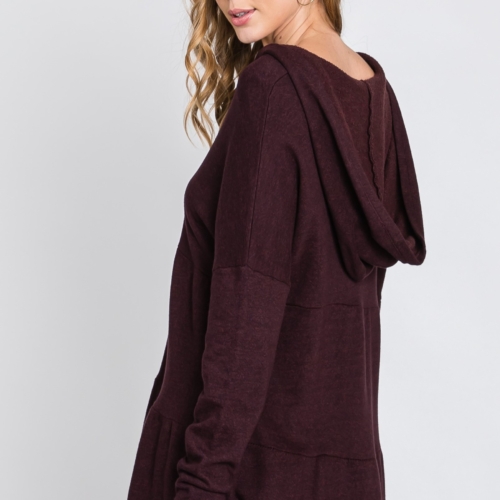 Stay warm and stylish in our BURGUNDY FRECH TERRY LONG SLEEVES TIERED TUNIC HOODIE TOP! With its soft terry fabric and unique tiered design, this hoodie top is perfect for any casual outing. Stay snug and trendy with our BURGUNDY hoodie top.