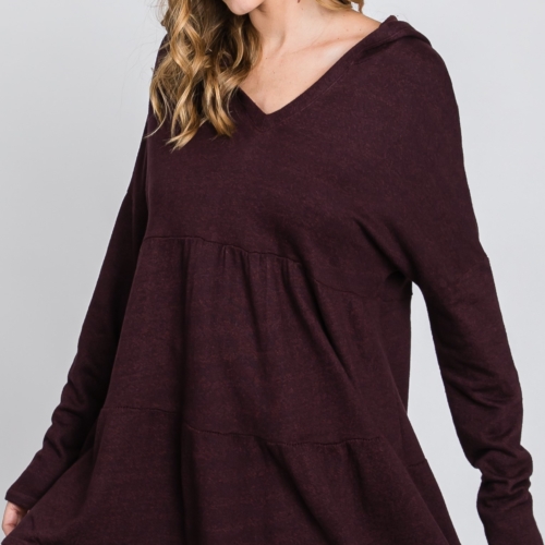 Stay warm and stylish in our BURGUNDY FRECH TERRY LONG SLEEVES TIERED TUNIC HOODIE TOP! With its soft terry fabric and unique tiered design, this hoodie top is perfect for any casual outing. Stay snug and trendy with our BURGUNDY hoodie top.