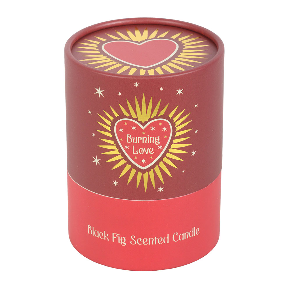 Light a little passion with this Burning Love scented candle, featuring the romantic scent of black fig in a blush pink glass jar with a luxe gold lid and tassel detail. With its sacred heart design and bold packaging, this candle makes a stylish addition to cosy nights in. Approximately 28-hour burn time. Never leave a lit candle unattended. Designed by Something Different Wholesale and part of the Sacred Heart collection of Valentine’s Day gifts and heart-themed home decor.