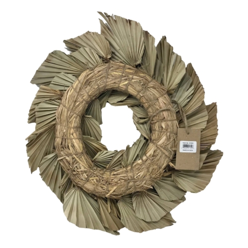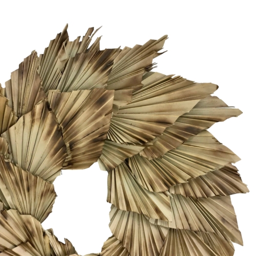 Burnt Tips All Natural Spear Palm Frond Wreath. As is or adorned with our Organic Shola Florals this Dried Palm Wreath is sure to impress. Sturdy Construction for Indoor/Outdoor Use. Handmade in India