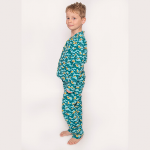 Inspire sweet dreams and a blissful night’s sleep in these sumptuous two-piece boy’s pyjamas. Designed in our dark aqua mixed bee print, they have been affectionately crafted from 100% organic cotton poplin.