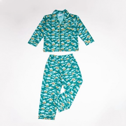 Inspire sweet dreams and a blissful night’s sleep in these sumptuous two-piece boy’s pyjamas. Designed in our dark aqua mixed bee print, they have been affectionately crafted from 100% organic cotton poplin.