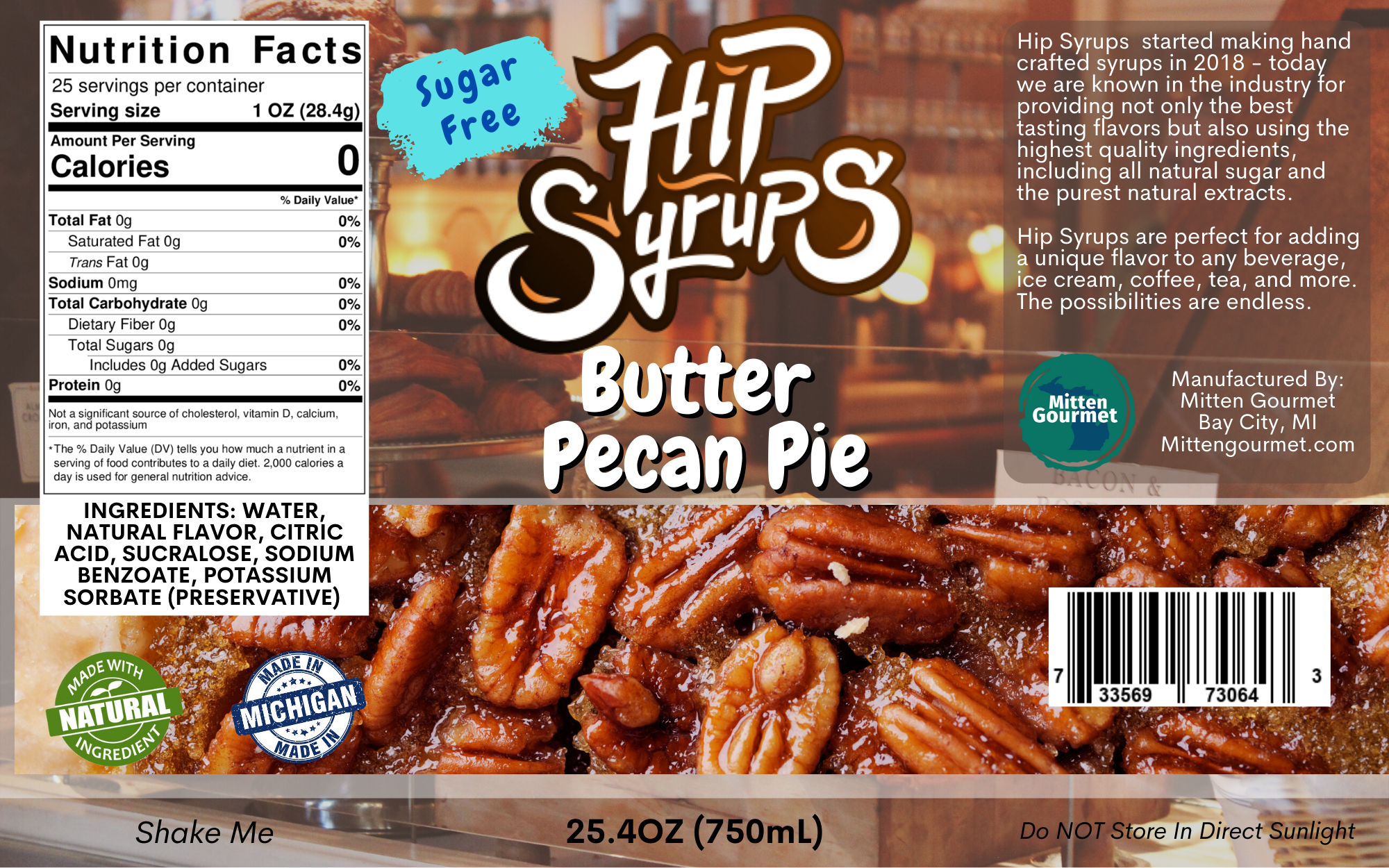 Natural flavoring, that comes in sugar or sugar-free! Ideal for your water, tea, smoothies, shakes, and much more! All products are handcrafted & made right in Michigan! This handcrafted Butter Pecan Pie is an exact duplicate of everyone’s favorite dessert around the holidays!