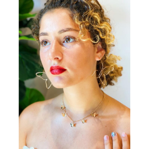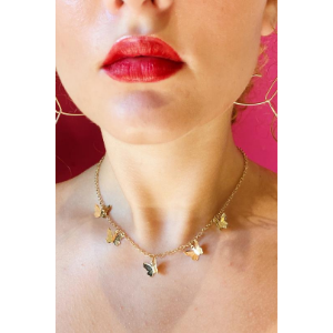 Stunning style of necklace with five dainty butterflies attached throughout. 16 inch chain 2 inch extender Lead and Nickel Free Metal link chain. Brass butterfly charms